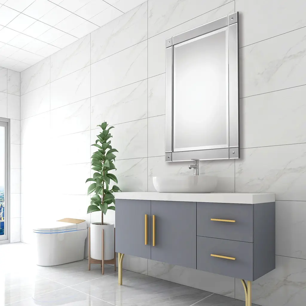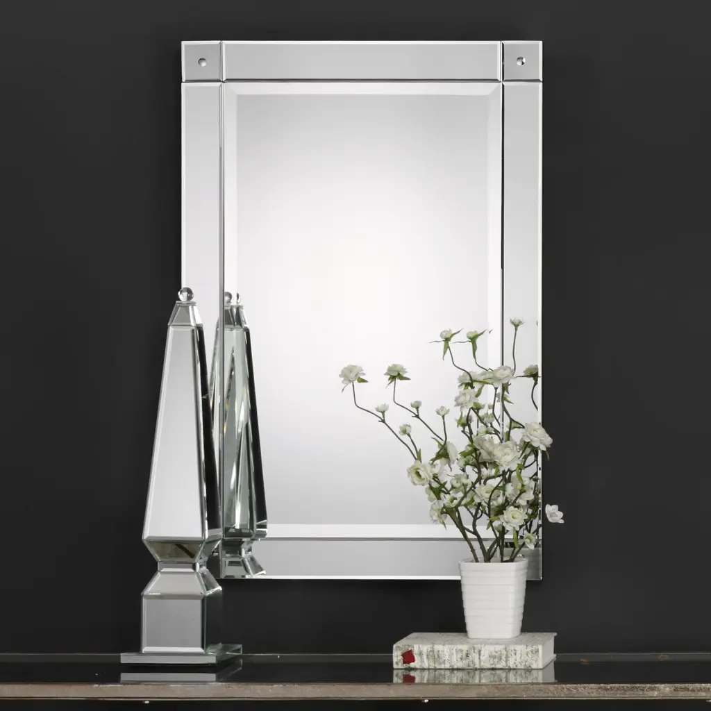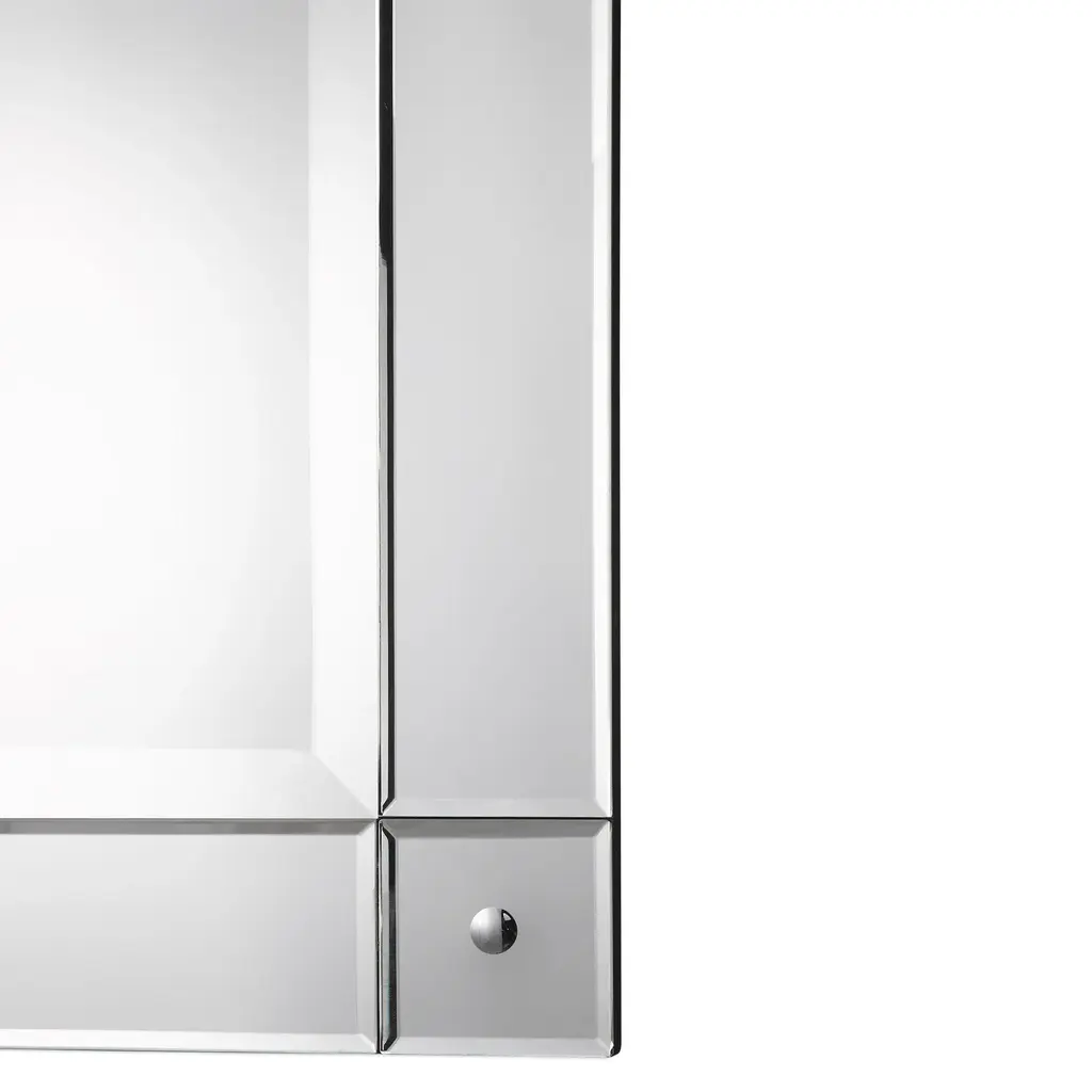 The simplicity of this frameless, beveled mirror is enhanced with decorative details in each corner. The center mirror has a 1" bevel and may be hung either vertically or horizontally. Perrect for entry way, over a fireplace or used in a bathroom. Antique, vintage, designer floor samples & new products from one of the hottest Retail and To The Trade Home Furnishings showrooms in the country. Located in Chicago's chic Roscoe Village, Kenneth Ludwig Chicago carries the best offerings in furniture, accessories, artwork & textiles. Offerings are always fresh & always inspiring! Quite often ( due to a discontinued style, fabric or frame ) they must sell off their showroom floor samples. You receive first quality pieces at amazing prices. Check back weekly for new inventory added.