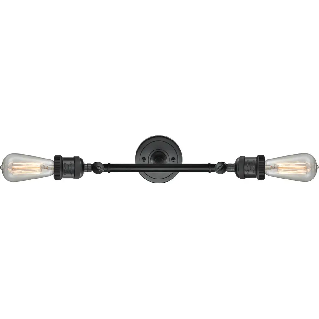 Franklin Restoration Bare Bulb 2 Light 11 Inch Matte Black Bath Vanity Light Wall Light, Franklin Restoration