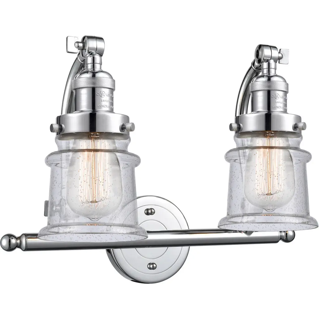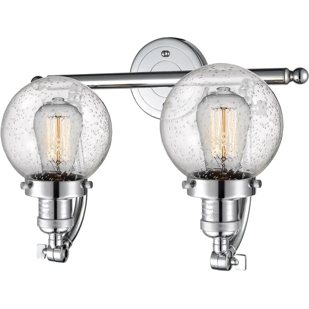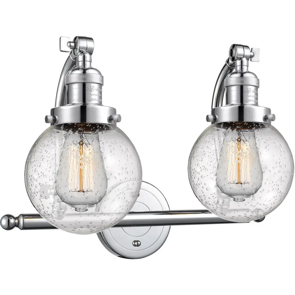 Franklin Restoration Beacon 2 Light 16 Inch Polished Chrome Bath Vanity Light Wall Light In Seedy Glass, Franklin Restoration
