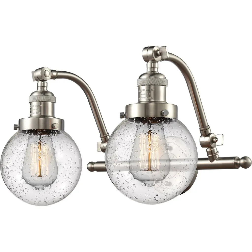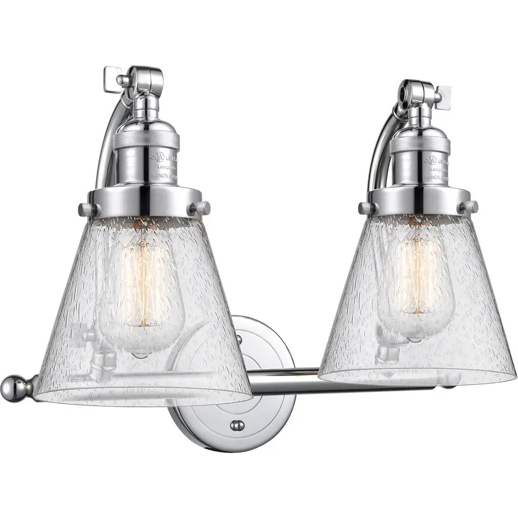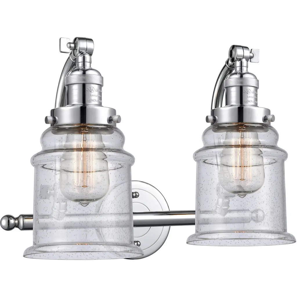 Franklin Restoration Beacon 2 Light 16 Inch Polished Chrome Bath Vanity Light Wall Light In Seedy Glass, Franklin Restoration