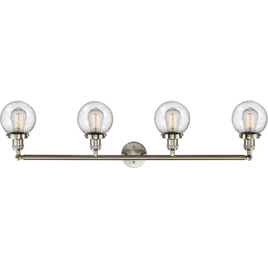 Franklin Restoration Beacon 4 Light 42 Inch Brushed Satin Nickel Bath Vanity Light Wall Light In Seedy Glass, Franklin Restoration