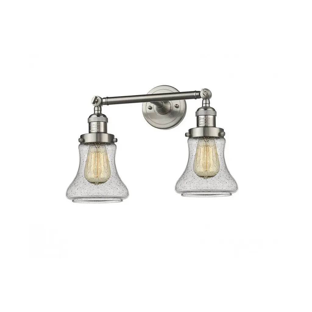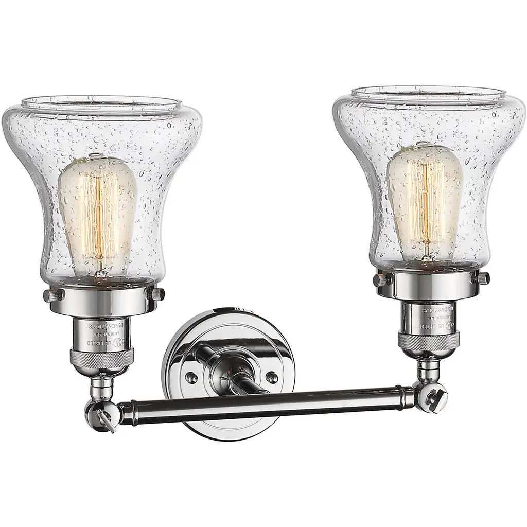Franklin Restoration Bellmont 2 Light 17 Inch Polished Chrome Bath Vanity Light Wall Light In Seedy Glass, Franklin Restoration