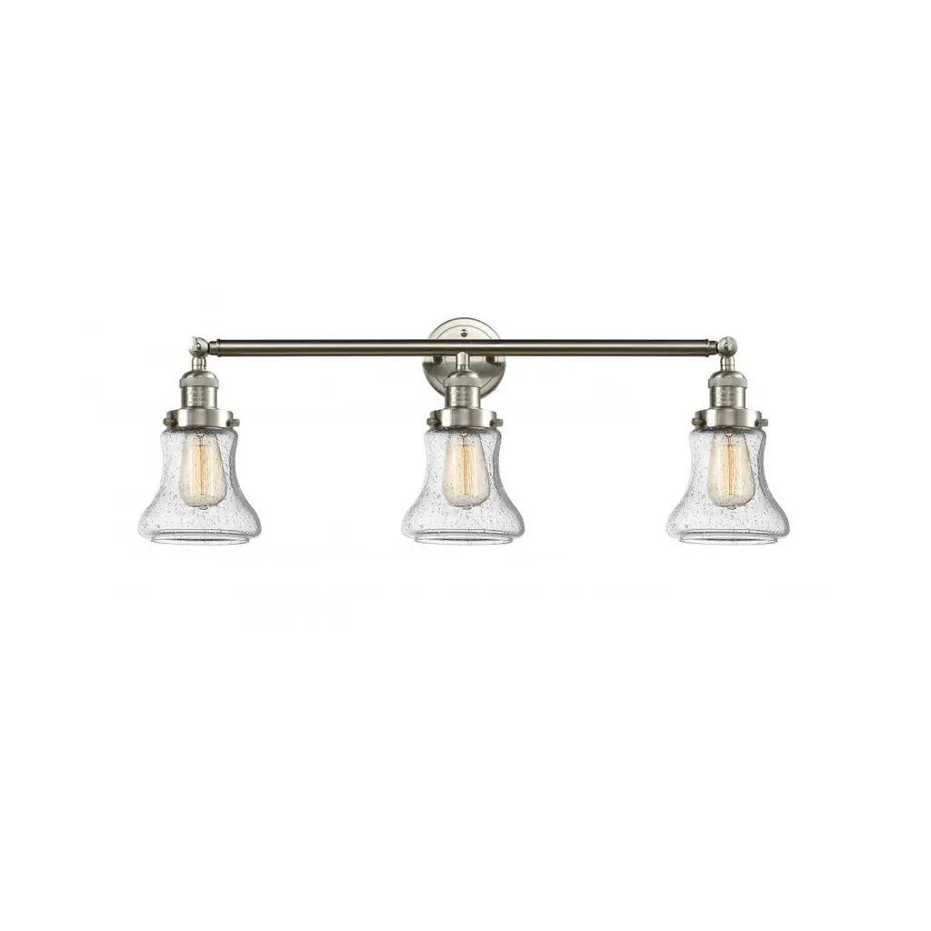 The Bellmont 3 Light Bath Vanity Light is part of the Franklin Restoration Collection. Solid Brass 180 Degree Adjustable Swivels with internal teeth that lock in at 5 degree intervals With Engraved Cast Cup