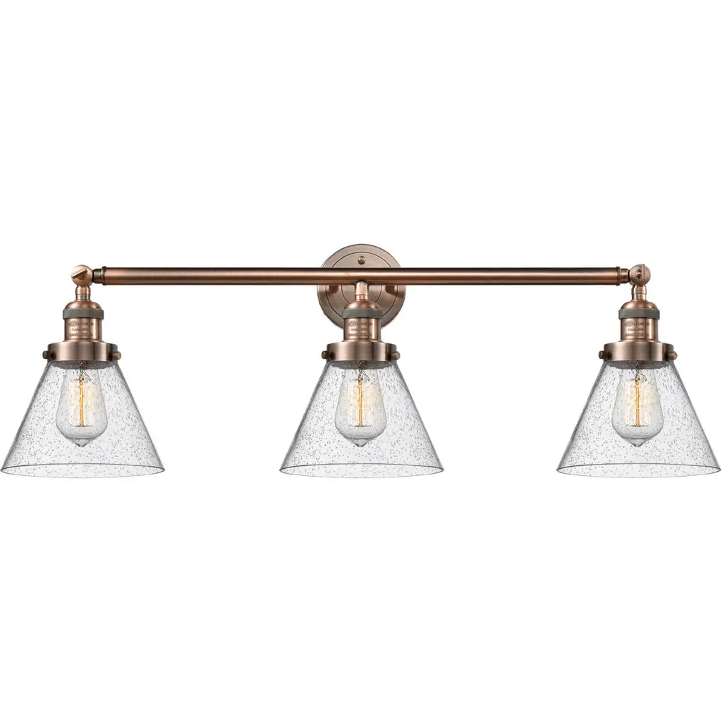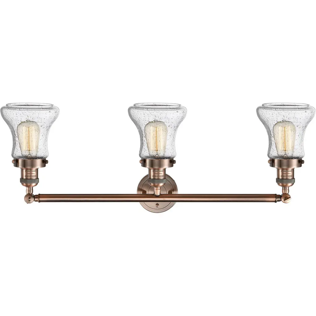 Franklin Restoration Bellmont 3 Light 30 Inch Antique Copper Bath Vanity Light Wall Light In Seedy Glass, Franklin Restoration