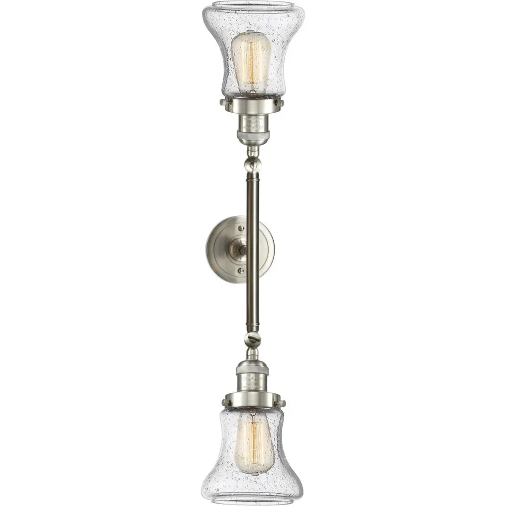 Franklin Restoration Bellmont Led 17 Inch Brushed Satin Nickel Bath Vanity Light Wall Light In Seedy Glass, Franklin Restoration