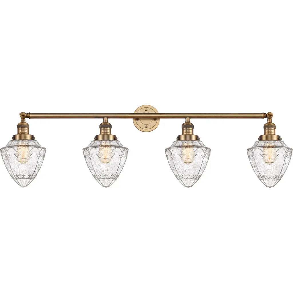 The Small Bullet 4 Light Bath Vanity Light is part of the Franklin Restoration Collection. Solid Brass 180 Degree Adjustable Swivels with internal teeth that lock in at 5 degree intervals With Engraved Cast Cup