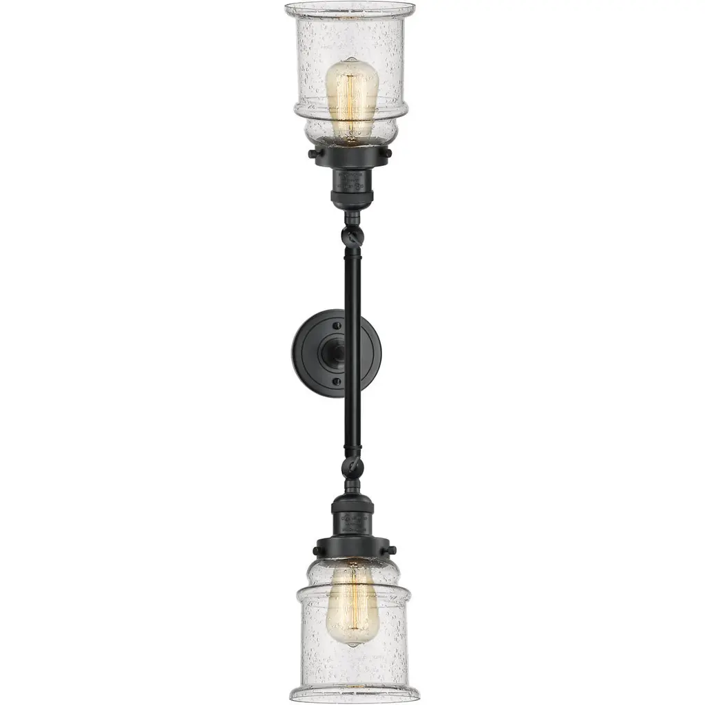 Franklin Restoration Canton Led 16.5 Inch Matte Black Bath Vanity Light Wall Light In Seedy Glass, Franklin Restoration