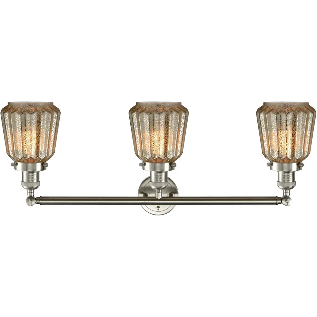 Franklin Restoration Chatham 3 Light 30 Inch Brushed Satin Nickel Bath Vanity Light Wall Light In Mercury Glass, Franklin Restoration