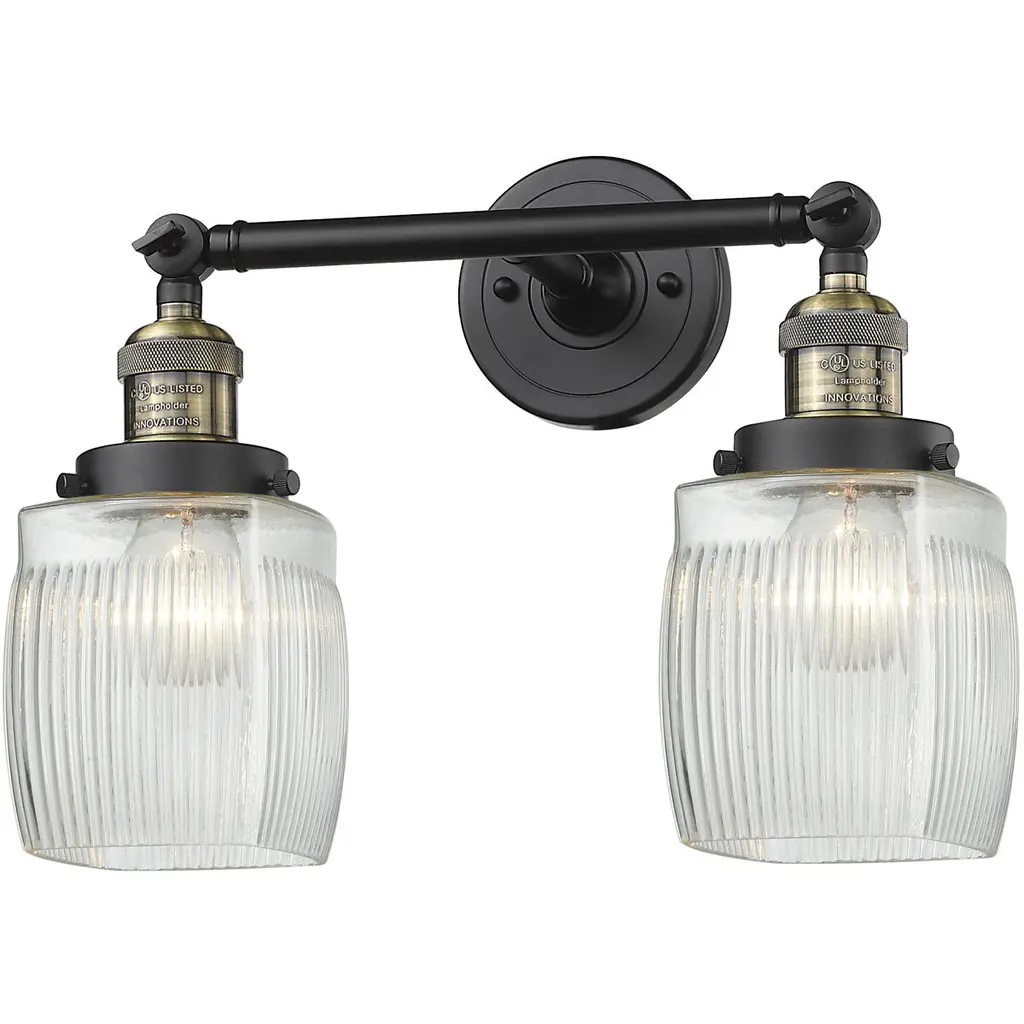 The Colton 2 Light Bath Vanity Light is part of the Franklin Restoration Collection. Solid Brass 180 Degree Adjustable Swivels with internal teeth that lock in at 5 degree intervals