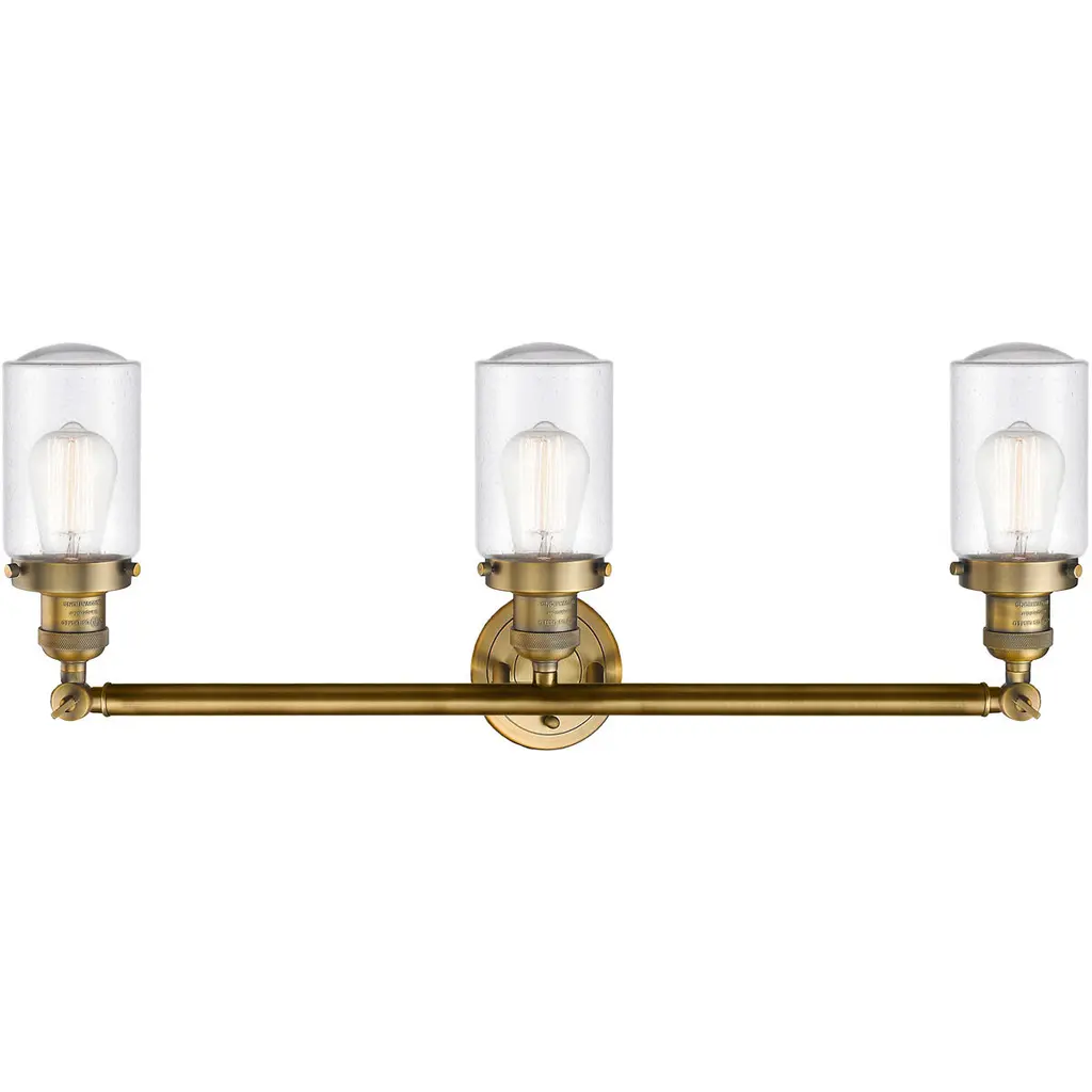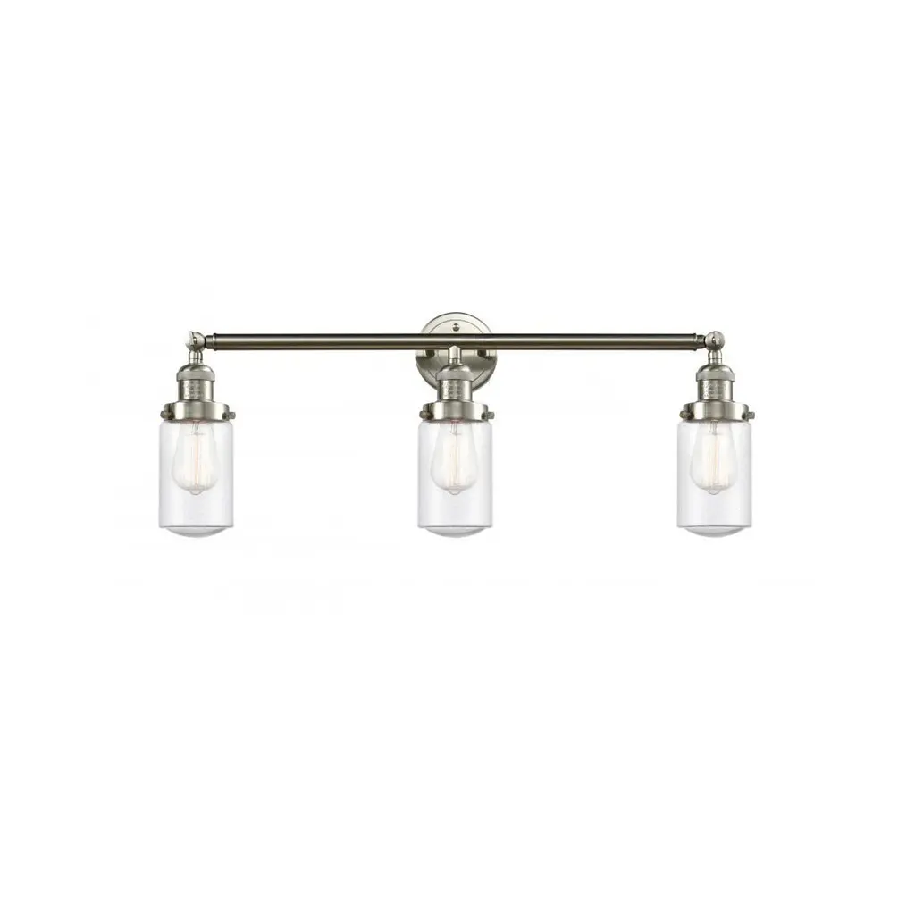 The Dover 3 Light Bath Vanity Light is part of the Franklin Restoration Collection. Solid Brass 180 Degree Adjustable Swivels with internal teeth that lock in at 5 degree intervals With Engraved Cast Cup