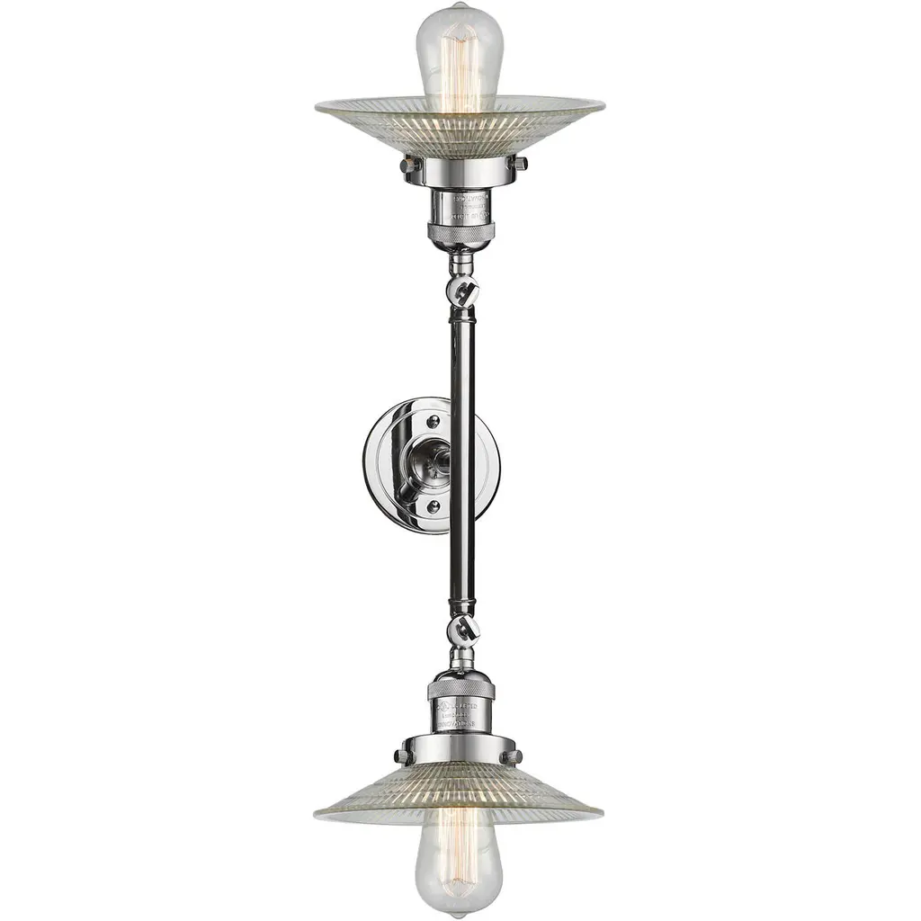 Franklin Restoration Halophane 2 Light 18 Inch Polished Chrome Bath Vanity Light Wall Light In Clear Halophane Glass, Franklin Restoration