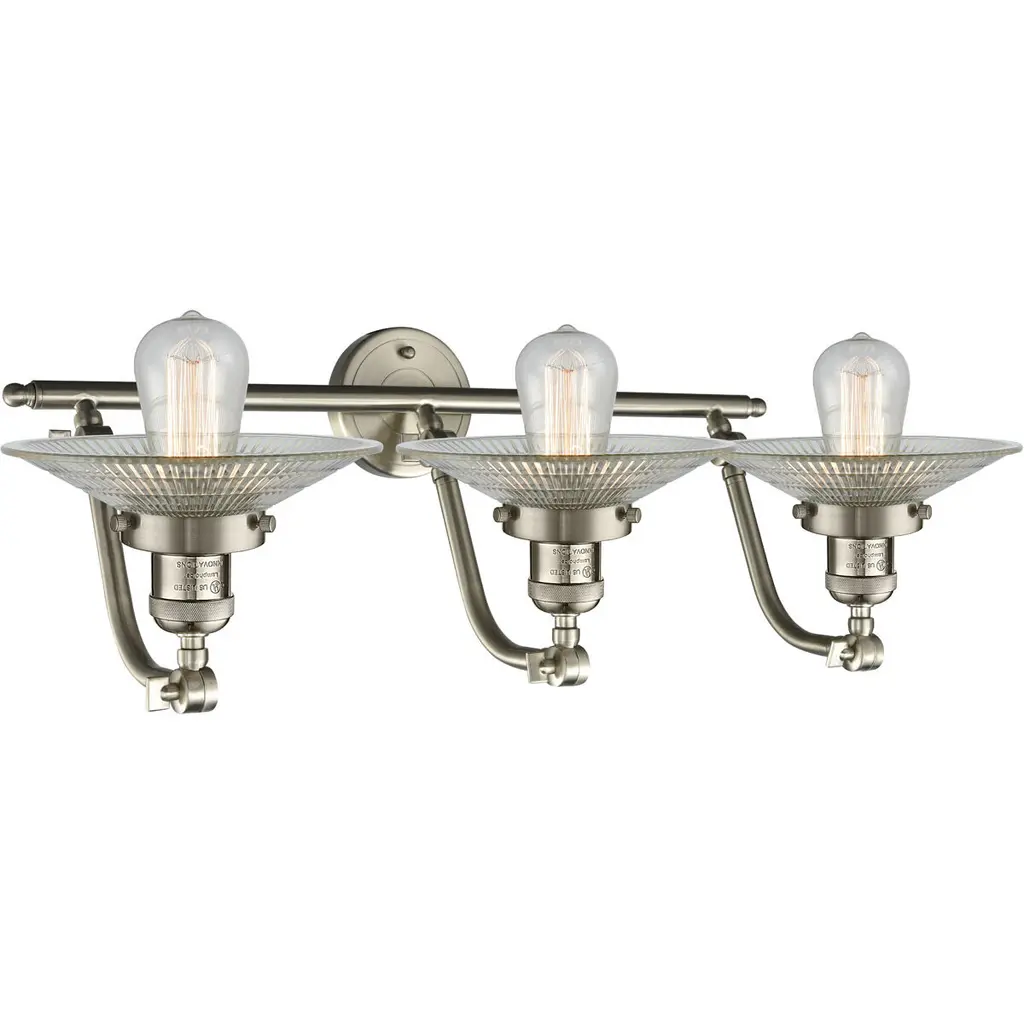 Franklin Restoration Halophane Led 28 Inch Brushed Satin Nickel Bath Vanity Light Wall Light In Clear Halophane Glass, Franklin Restoration