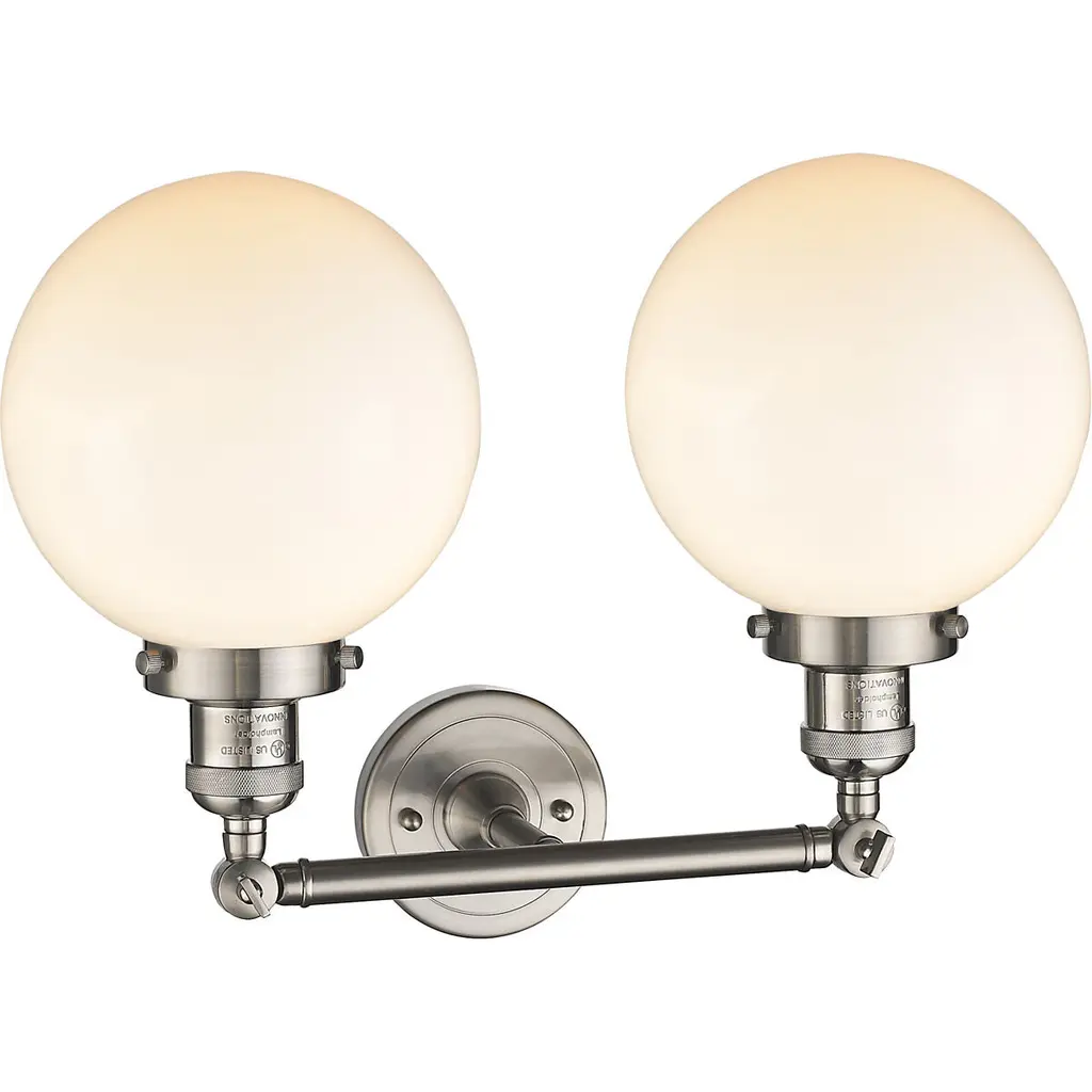 Franklin Restoration Large Beacon 2 Light 19 Inch Brushed Satin Nickel Bath Vanity Light Wall Light In Matte White Glass, Franklin Restoration