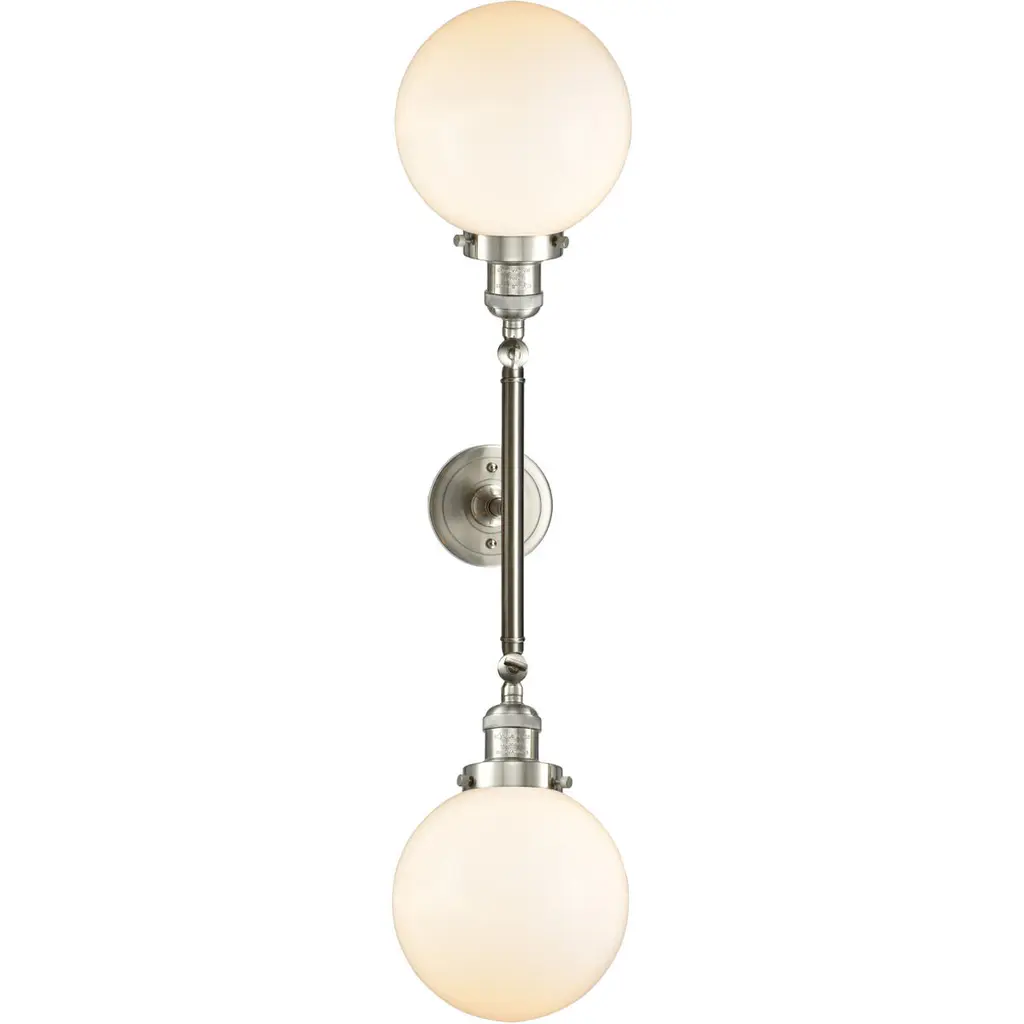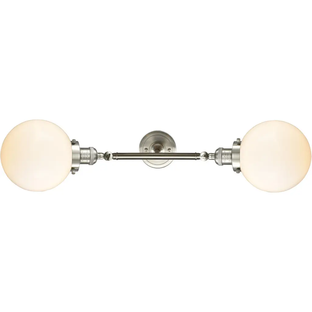 Franklin Restoration Large Beacon 2 Light 19 Inch Brushed Satin Nickel Bath Vanity Light Wall Light In Matte White Glass, Franklin Restoration