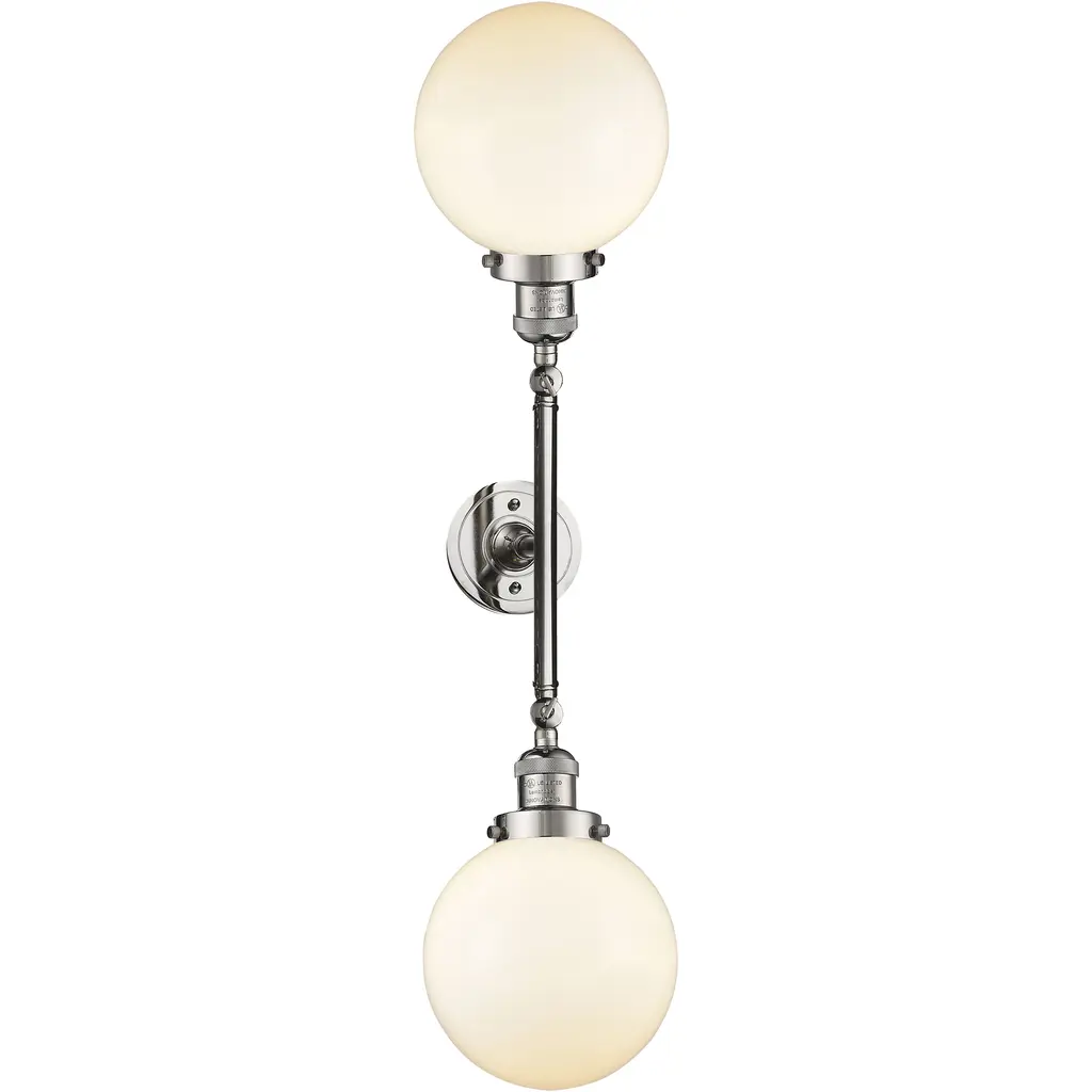 The Large Beacon 2 Light Bath Vanity Light is part of the Franklin Restoration Collection. Solid Brass 180 Degree Adjustable Swivels with internal teeth that lock in at 5 degree intervals