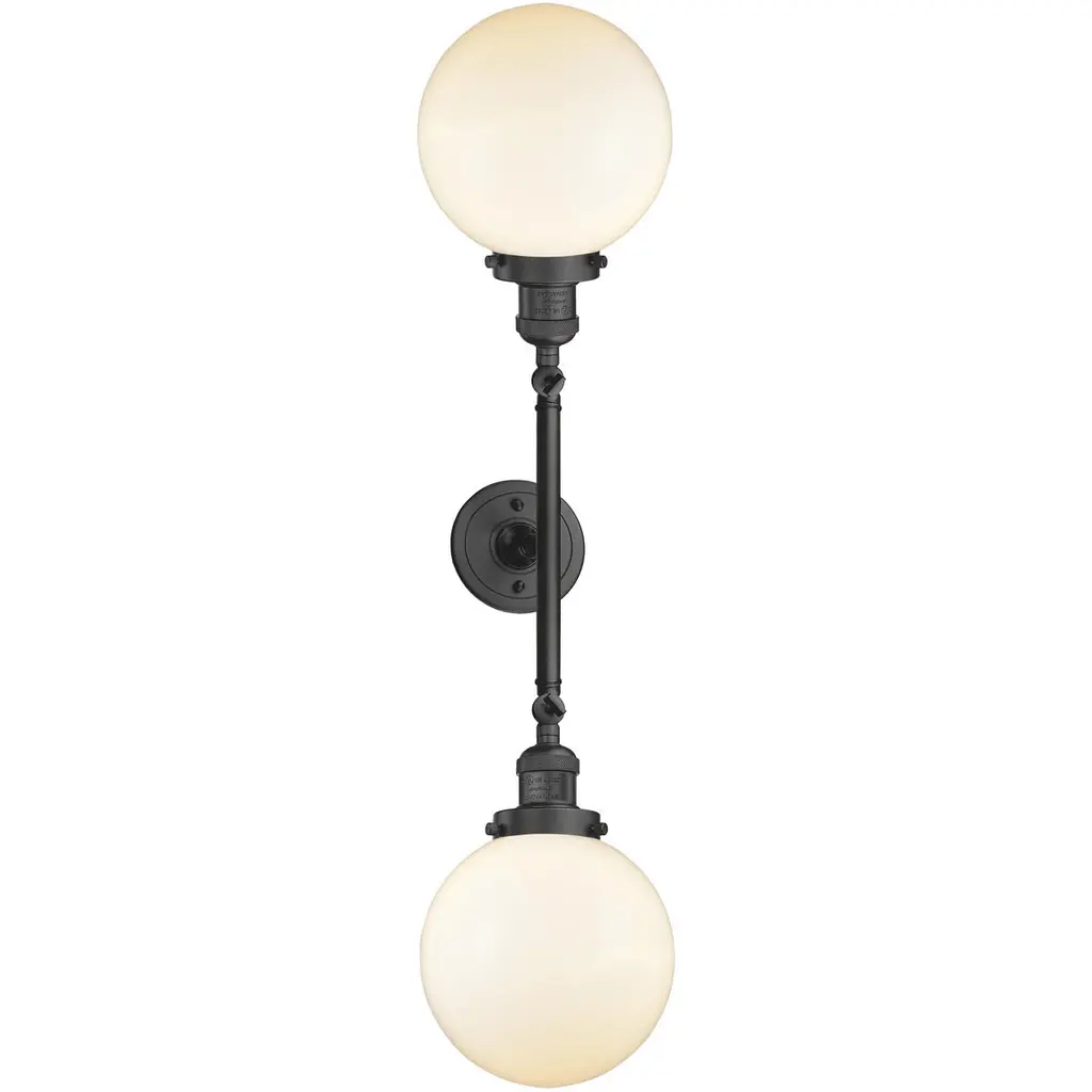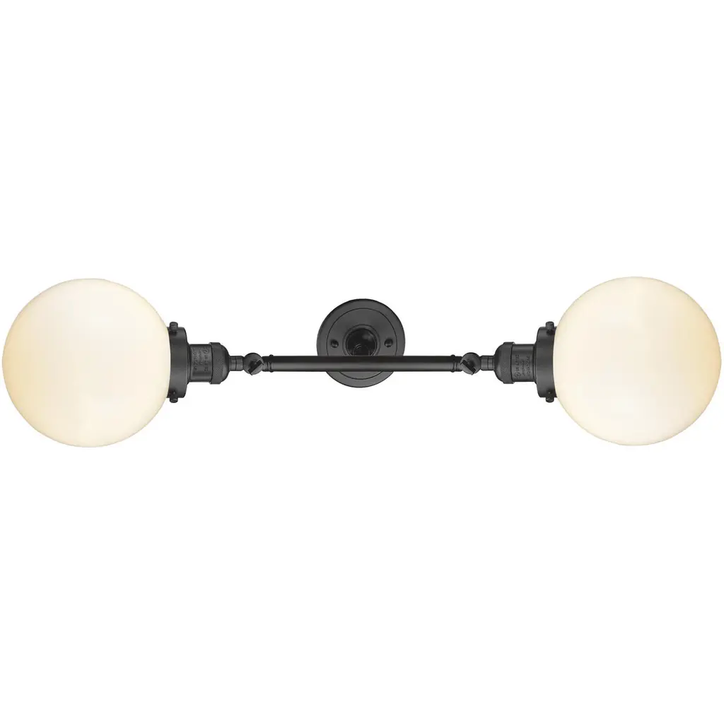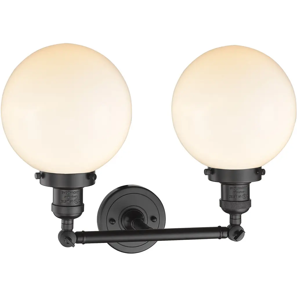 Franklin Restoration Large Beacon 2 Light 19 Inch Oil Rubbed Bronze Bath Vanity Light Wall Light In Matte White Glass, Franklin Restoration