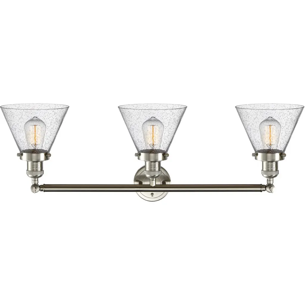 Franklin Restoration Large Cone Led 32 Inch Brushed Satin Nickel Bath Vanity Light Wall Light In Seedy Glass, Franklin Restoration