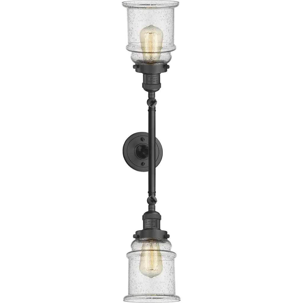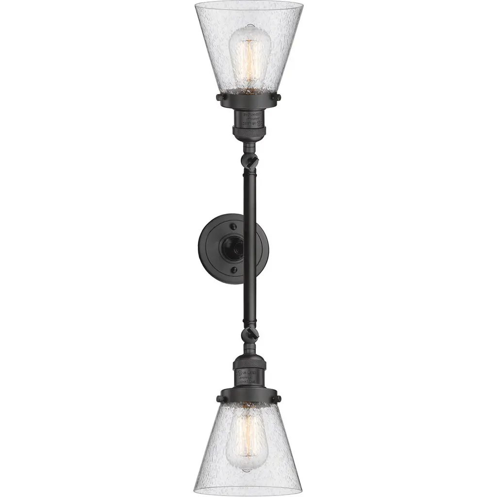 Franklin Restoration Small Cone Led 16 Inch Oil Rubbed Bronze Bath Vanity Light Wall Light In Seedy Glass, Franklin Restoration