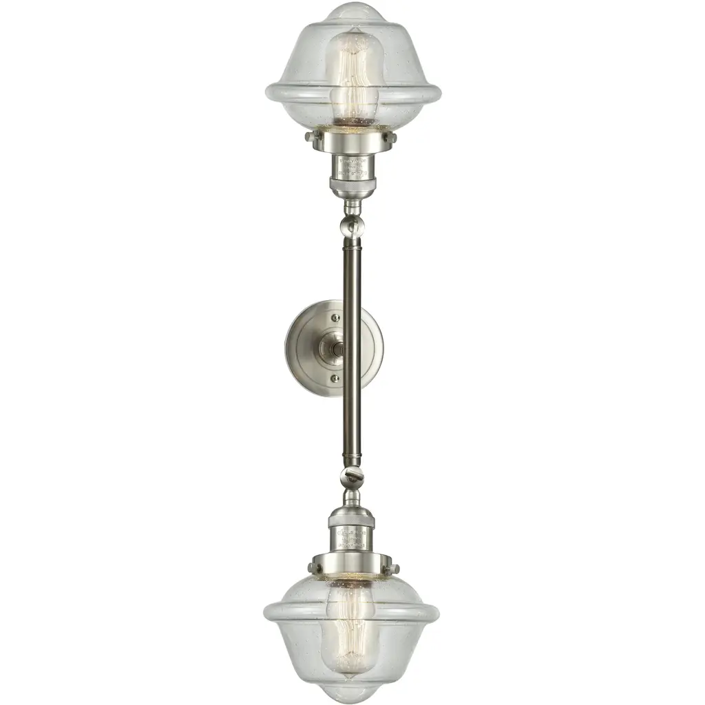 Franklin Restoration Small Oxford 2 Light 17 Inch Oil Rubbed Bronze Bath Vanity Light Wall Light In Seedy Glass, Franklin Restoration