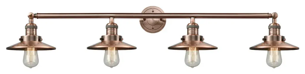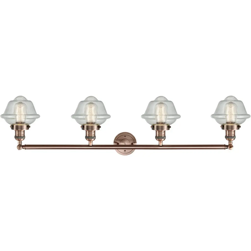 Franklin Restoration Small Oxford 4 Light 46 Inch Antique Copper Bath Vanity Light Wall Light In Seedy Glass, Franklin Restoration