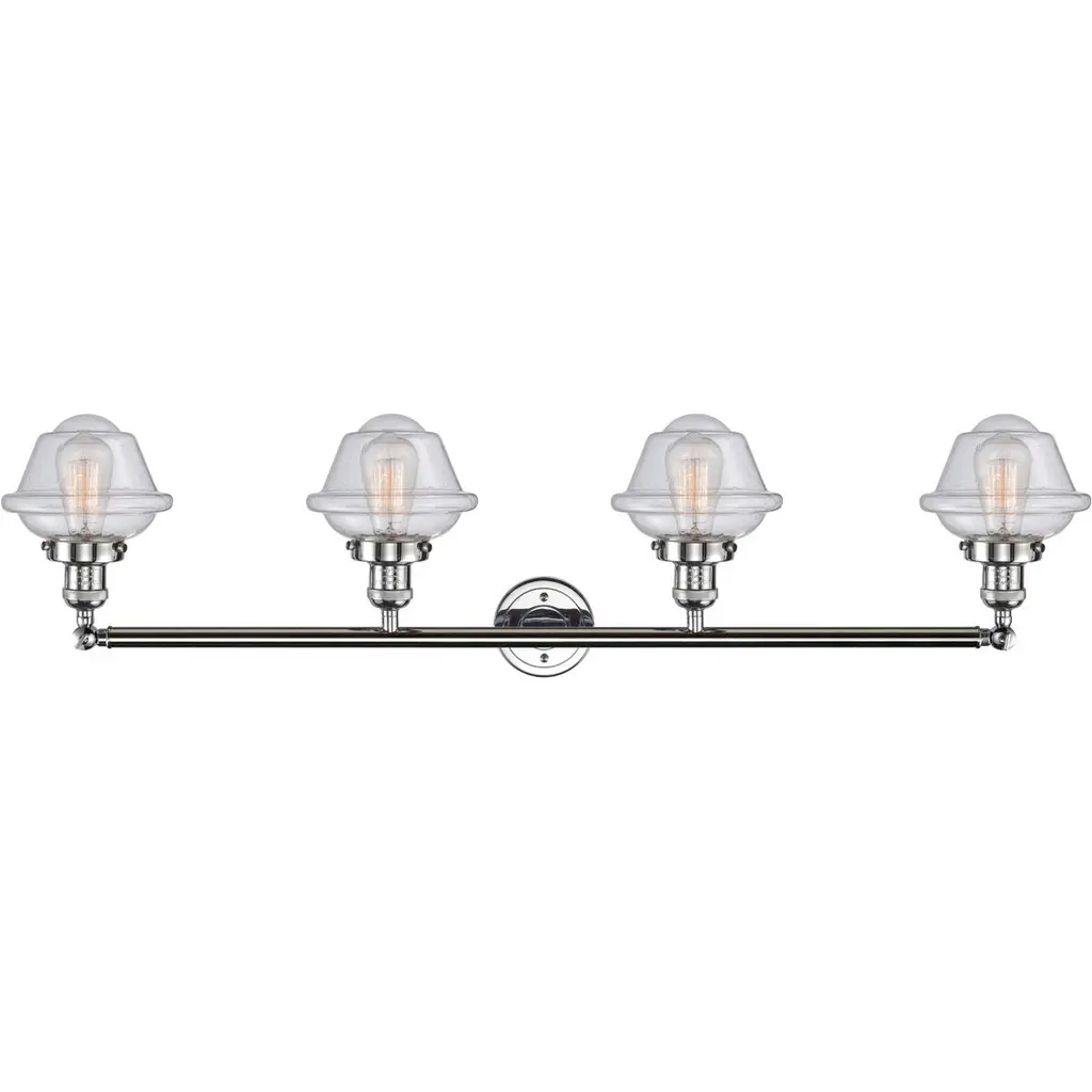 The Small Oxford 4 Light Bath Vanity Light is part of the Franklin Restoration Collection. Solid Brass 180 Degree Adjustable Swivels with internal teeth that lock in at 5 degree intervals With Engraved Cast Cup