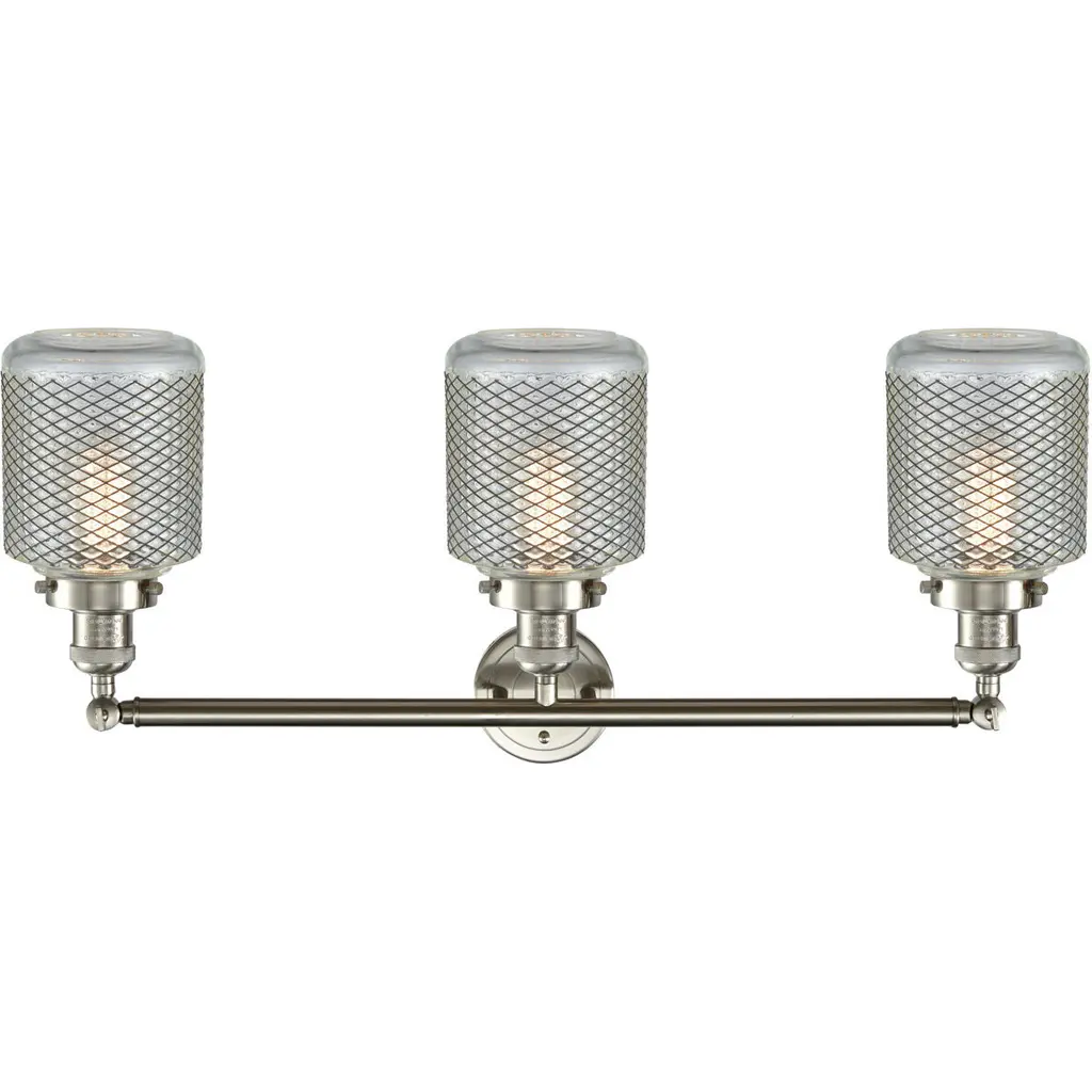 Franklin Restoration Stanton 3 Light 32 Inch Brushed Satin Nickel Bath Vanity Light Wall Light, Franklin Restoration