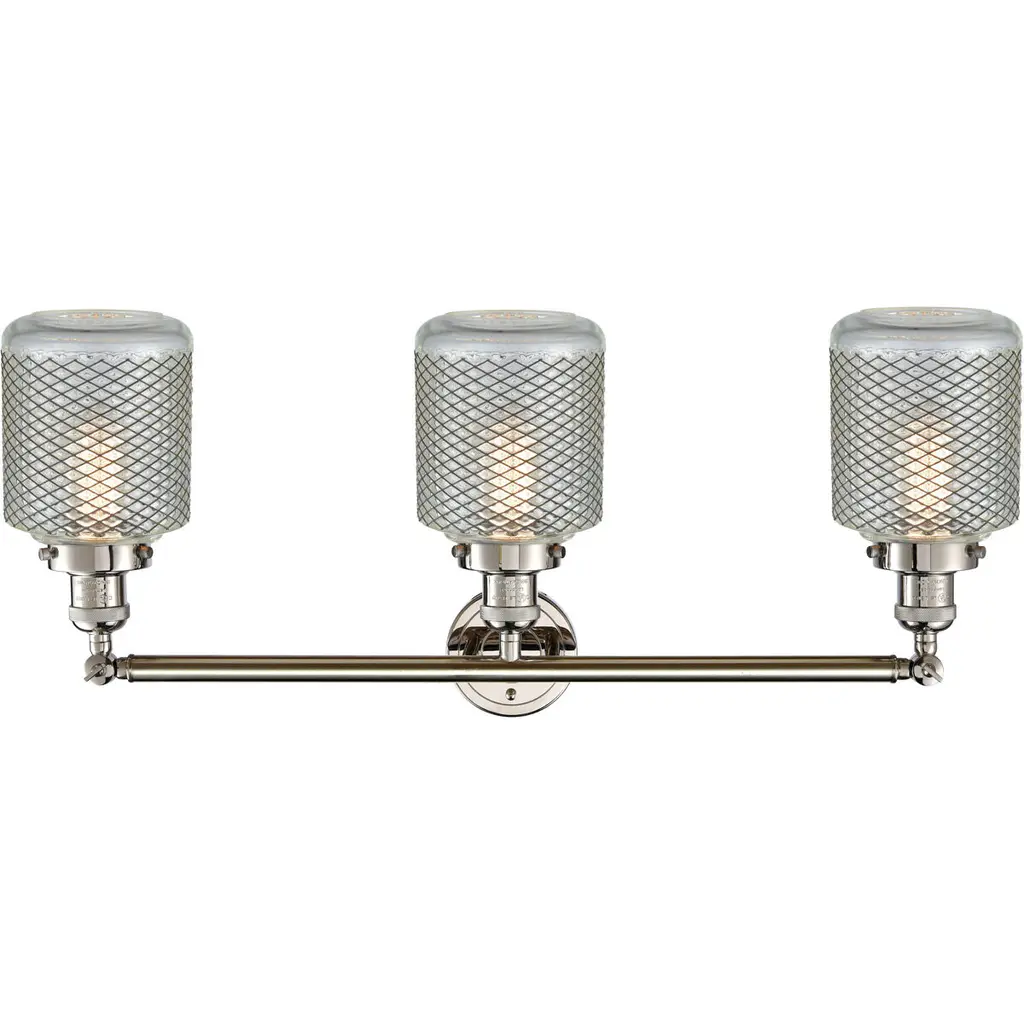The Stanton 3 Light Bath Vanity Light is part of the Franklin Restoration Collection. Solid Brass 180 Degree Adjustable Swivels with internal teeth that lock in at 5 degree intervals With Engraved Cast Cup