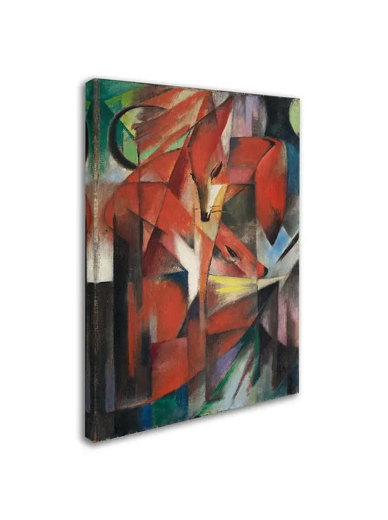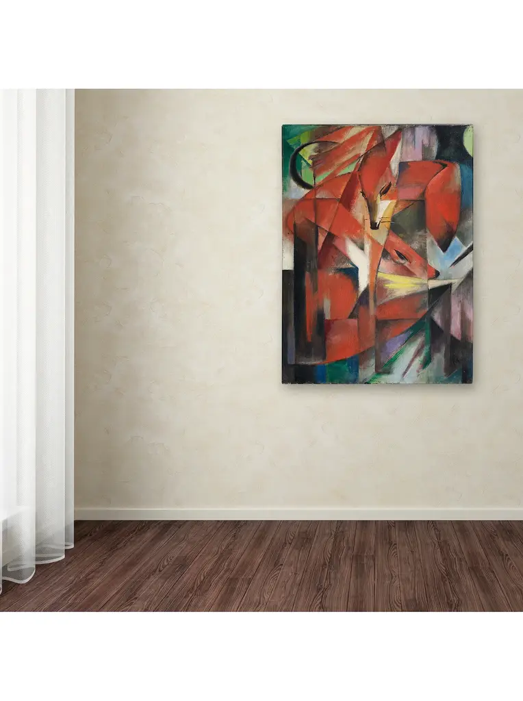 Artist: Franz MarcSubject: AnimalsStyle: TraditionalProduct Type: Gallery-Wrapped Canvas ArtMade in USAThis ready to hang, gallery-wrapped art piece features an abstract fox.Franz Marc was a German painter and printmaker, one of the key figures of the German Expressionist movement. He was a founding member of Der Blaue Reiter, a journal whose name later became synonymous with the circle of artists collaborating in it.Giclee (jee-clay) is an advanced printmaking process for creating high quality fine art reproductions. The attainable excellence that Giclee printmaking affords makes the reproduction virtually indistinguishable from the original piece. The result is wide acceptance of Giclee by galleries, museums, and private collectors. Gallery wrap is a method of stretching an artist's canvas so that the canvas wraps around the sides and is secured a hidden, wooden frame. This method of stretching and preparing a canvas allows for a frameless presentation of the finished painting.Whether it's a contemporary, rustic, modern, or traditional style decor, Trademark Fine Art offers a variety of high-quality, carefully built wall art that will surely complement any style. We provide an abundance of art themes that range from fascinating abstracts to breathtaking landscapes, in an assortment of sizes that will certainly bring excitement to any area of your home. From the bedroom to the living room, or even the office, Trademark Fine Art makes professionally handcrafted, ready to hang wall decor that will be admired for years to come!IMPORTANT: Avoid buying counterfeit products and transacting with unauthorized sellers. Trademark Fine Art is committed to providing the consumer with the absolute best price and value on our entire line of products, which we ensure by applying a rigorous Quality Control process. Trademark Fine Art is a registered trademark protected by U.S. Trademark law and will be vigorously defended.