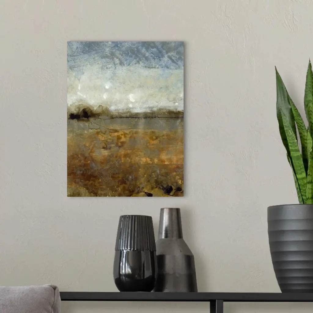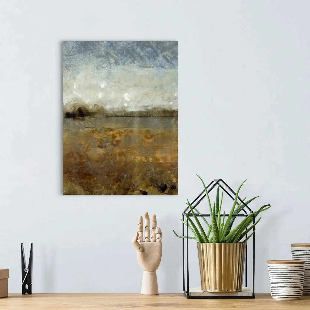 Contemporary abstract painting of what resembles an earthy toned landscape.