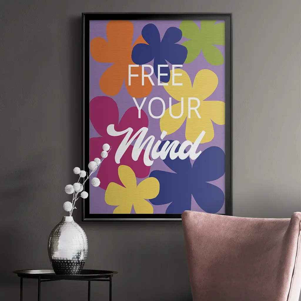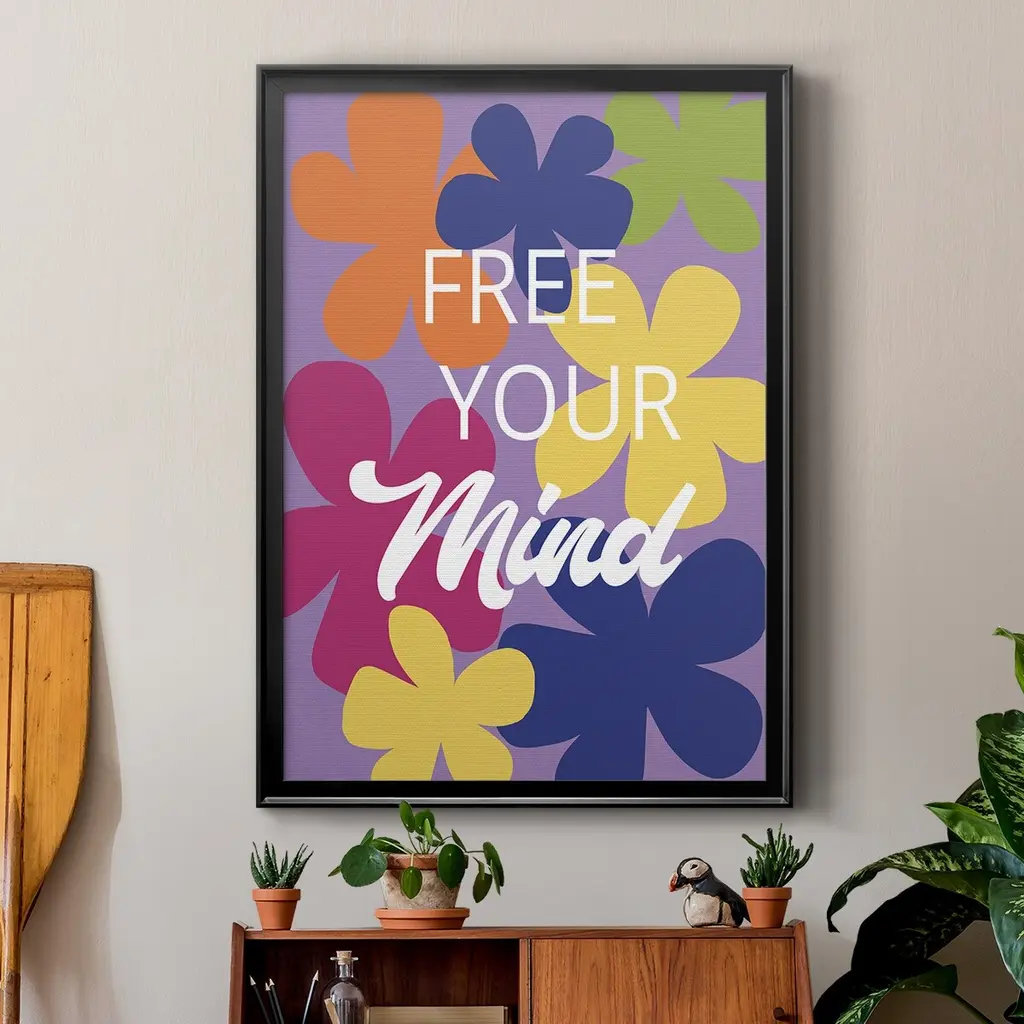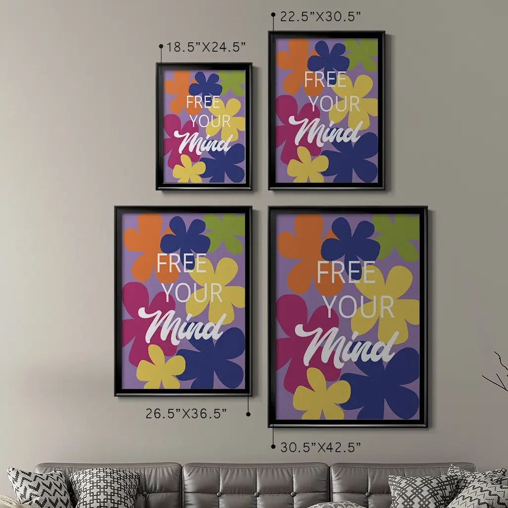 Free Your Mind Premium Framed Print - Ready to Hang A Premium Framed Print created to last. Framed in distressed wood and available in an array of sizes and colors Featuring a beveled a solid wood stretcher bar, each piece comes ready to hand 4 SIZES AVAILABLE 30.5''X42.5'' - Overall Size 26.5'X36.5'' - Overall Size 22.5''x30.5'' - Overall Size 18.5''x24.5'' - Overall Size Each piece is made to order. Each piece comes with hanging hardware. Made in the USA Ready to Hang