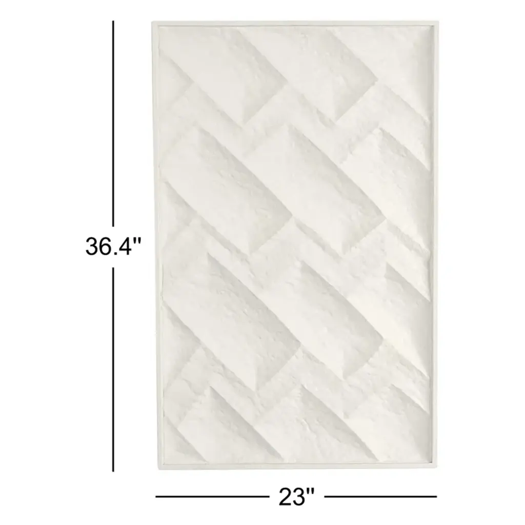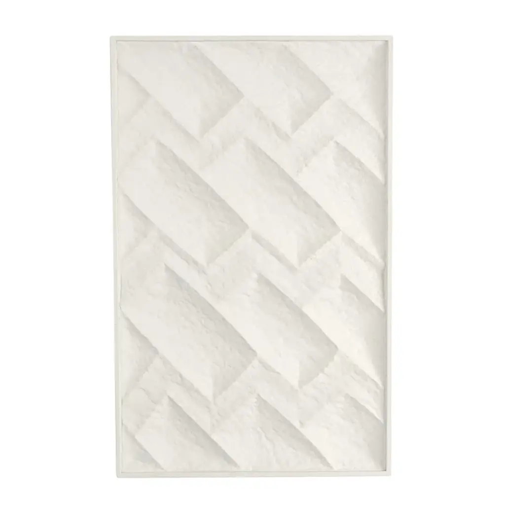 Enhance the beauty of your walls with this geometric panel wall decor on top of gold console table or leather sofa for a high end look. Can be hung horizontally or vertically using the holes; nails and screws not included. Suitable for indoor use only. This is a single white colored wall sculptures. Modern style.