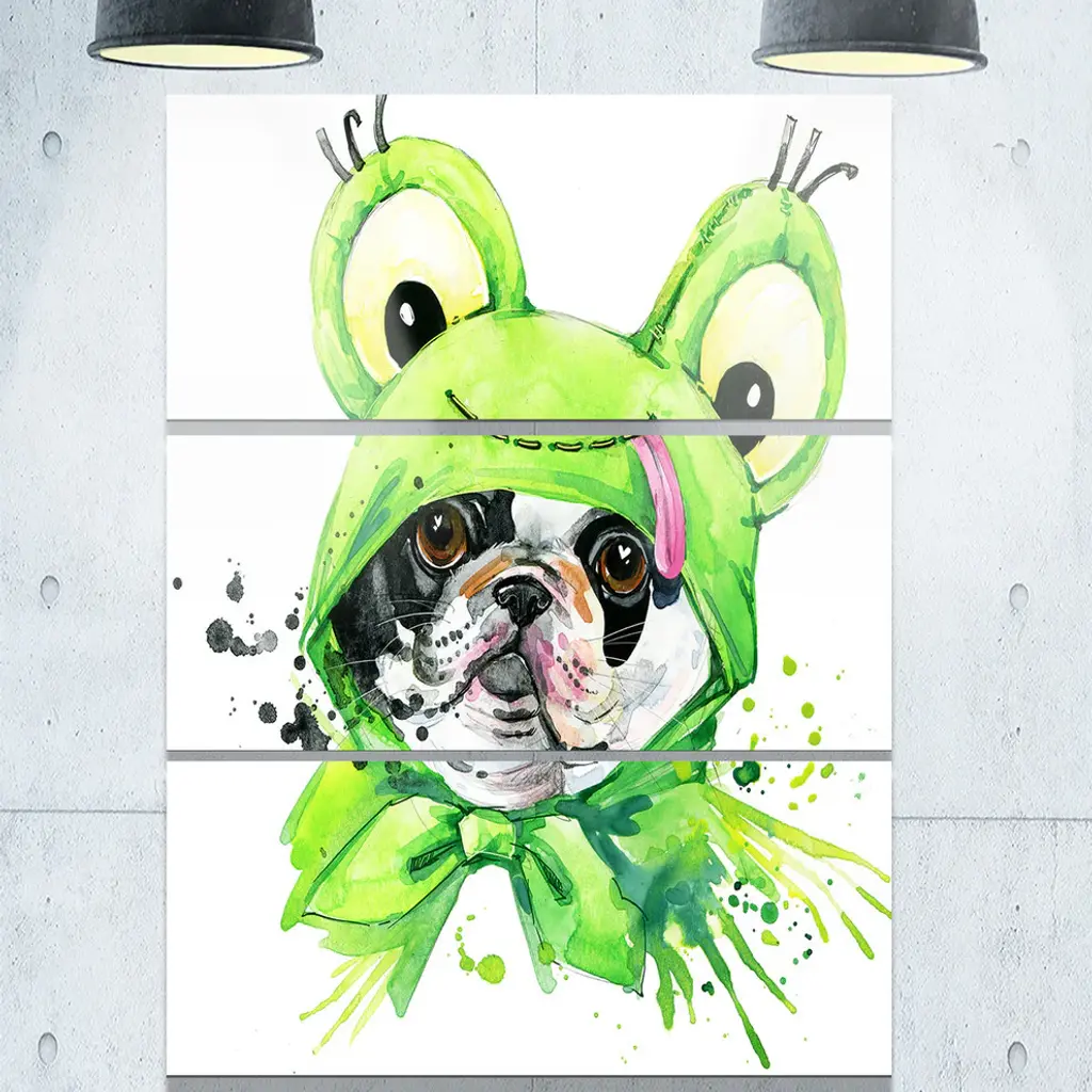 Bring contemporary abstraction to your home with this large 28W x 36H Metal Wall Art. This French Bulldog Illustration Metal Artwork makes it the focal point of any room or office. - White gloss coating ensures colors are extra vibrant with light reflection.- Aluminum grade sheet metal with 1 inch mounting frame on the back giving the illusion that the artwork is floating on the wall..- Mounting brackets are included along with instructions.- High quality digital images are created directly into a glossy aluminum panel producing a stunning and captivating print into the glossy finish of the metal.- Water, fire and scratch resistant HD aluminum panels.- Looks better than any photo paper and guaranteed to last at least 20 years- Easy to clean with a microfiber cloth. Colors are far superior to regular canvas art. - Easy to hang