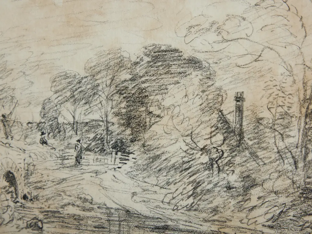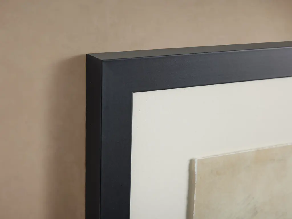 Adorn your walls with this giclee print of a French countryside. The hand-deckled edges give a feathery, hand-torn appearance while its floated placement within the frame adds depth. This piece is complemented by a wood frame in a black finish. Giclee print on paper framed under glass. Deckled and floated on a spice-colored mat. Wooden frame features a black finish. Hangs horizontally with a back-mounted wire.