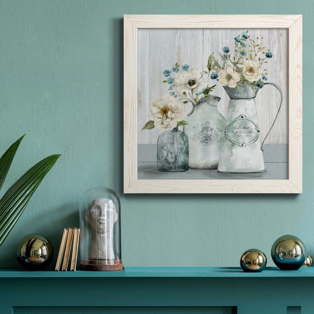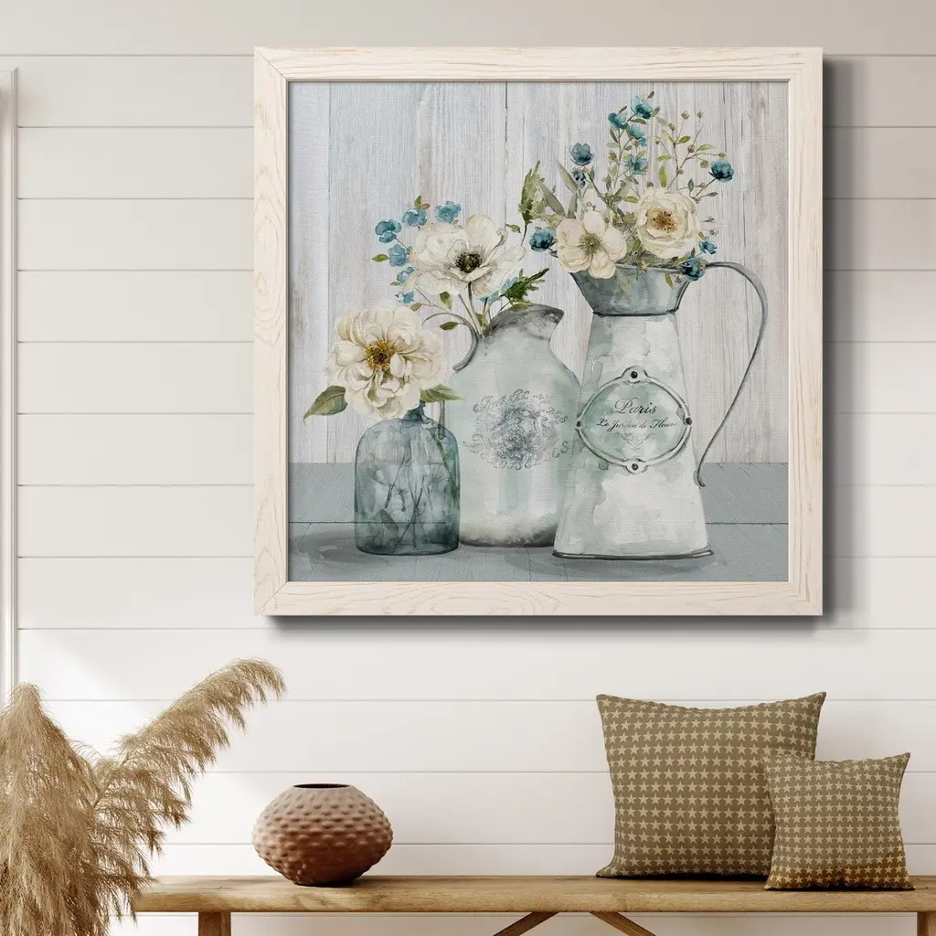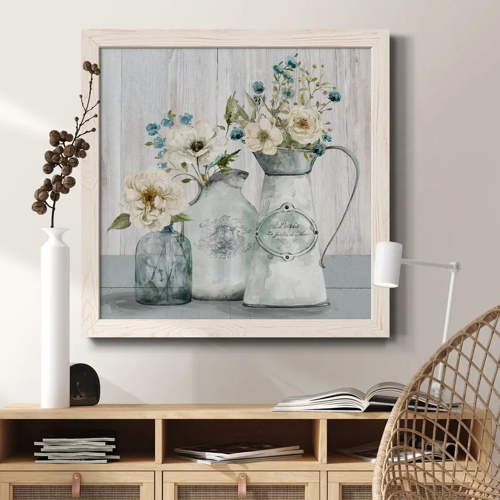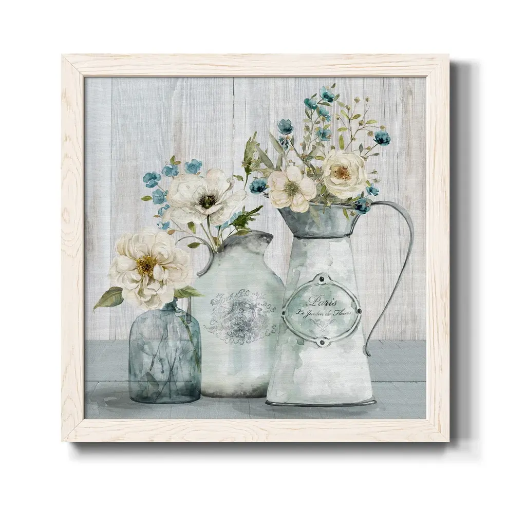 French Garden Flowers I-Premium Framed Canvas - Ready to Hang Framed in distressed wood and available in an array of sizes and colors Each piece is joined and assembled by hand and comes ready to hang 2 INCH BEVELED MATTE BOARD PLEXIGLASS COVERING READY TO HANG MADE IN THE USA SOLID WOOD FRAME MADE IN USA FADE RESISTANT GICLEE PRINTING on Canvas or Paper