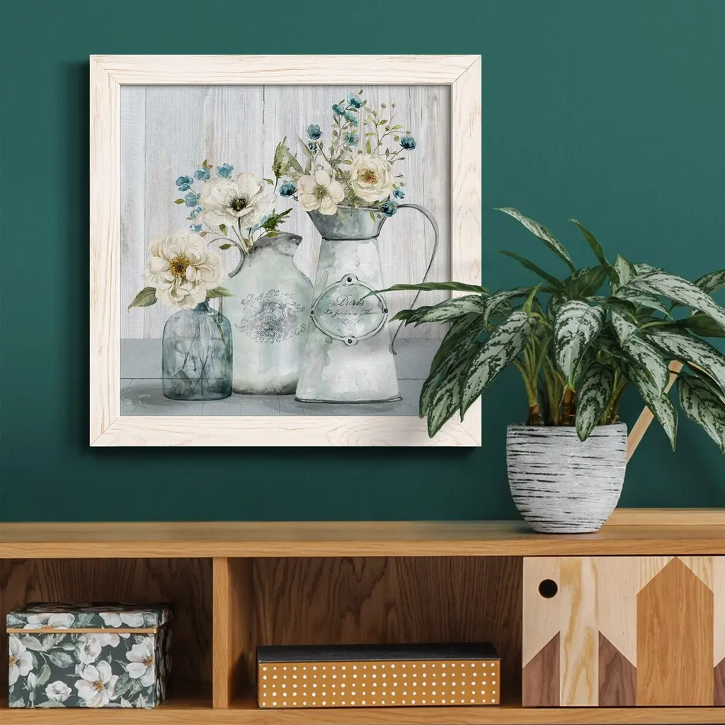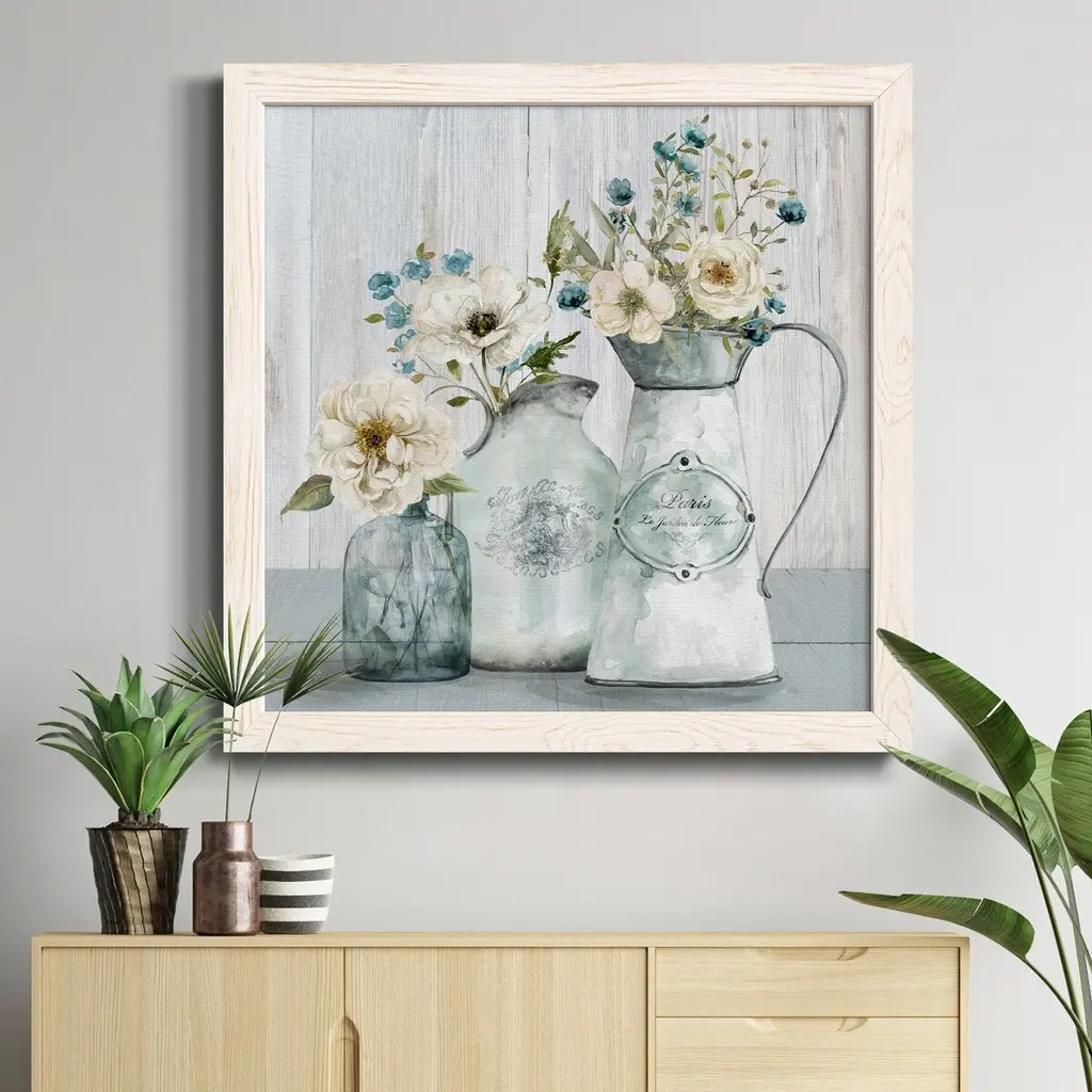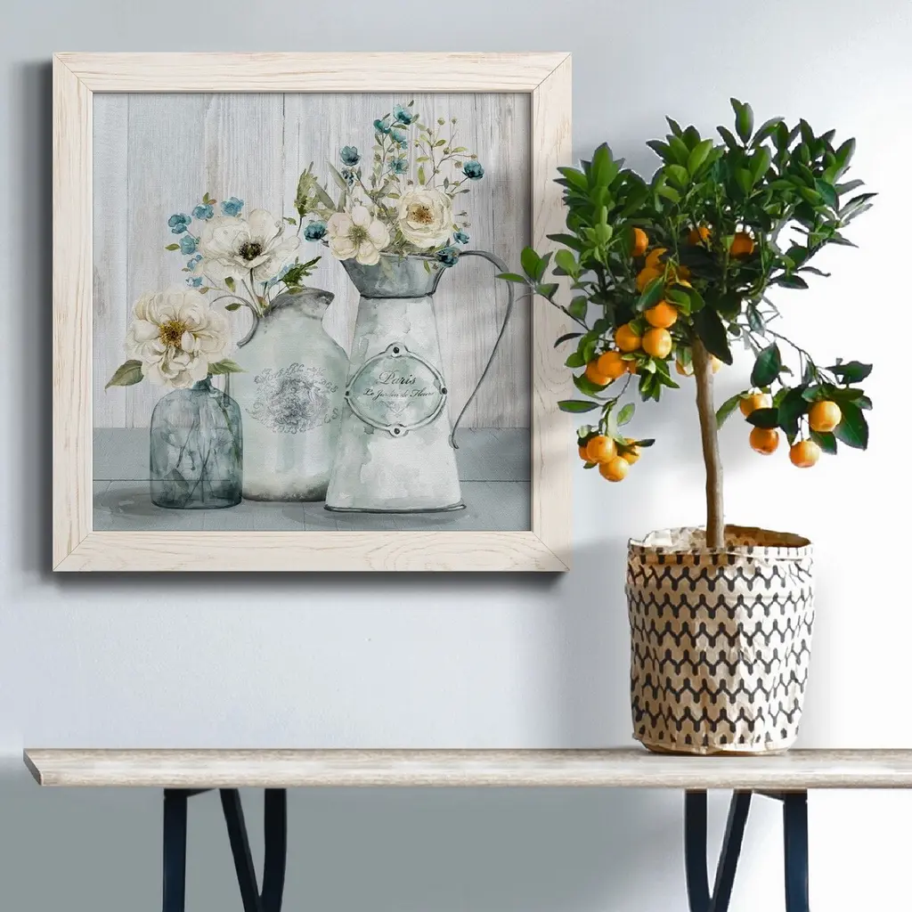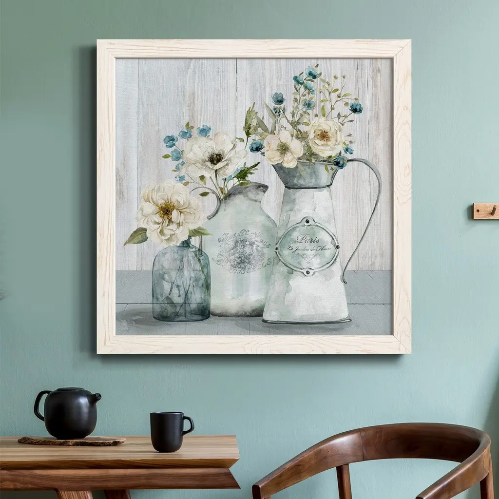 French Garden Flowers I-Premium Framed Canvas - Ready to Hang Framed in distressed wood and available in an array of sizes and colors Each piece is joined and assembled by hand and comes ready to hang 2 INCH BEVELED MATTE BOARD PLEXIGLASS COVERING READY TO HANG MADE IN THE USA SOLID WOOD FRAME MADE IN USA FADE RESISTANT GICLEE PRINTING on Canvas or Paper