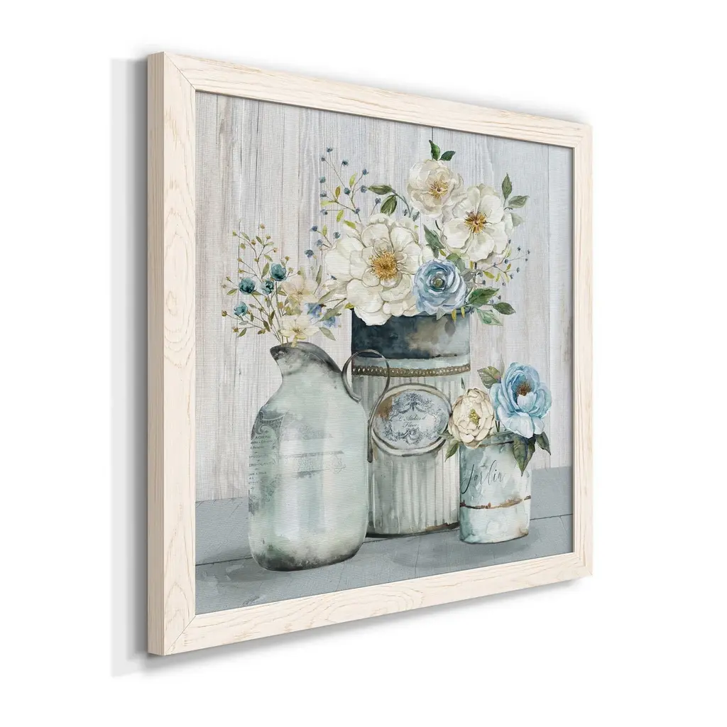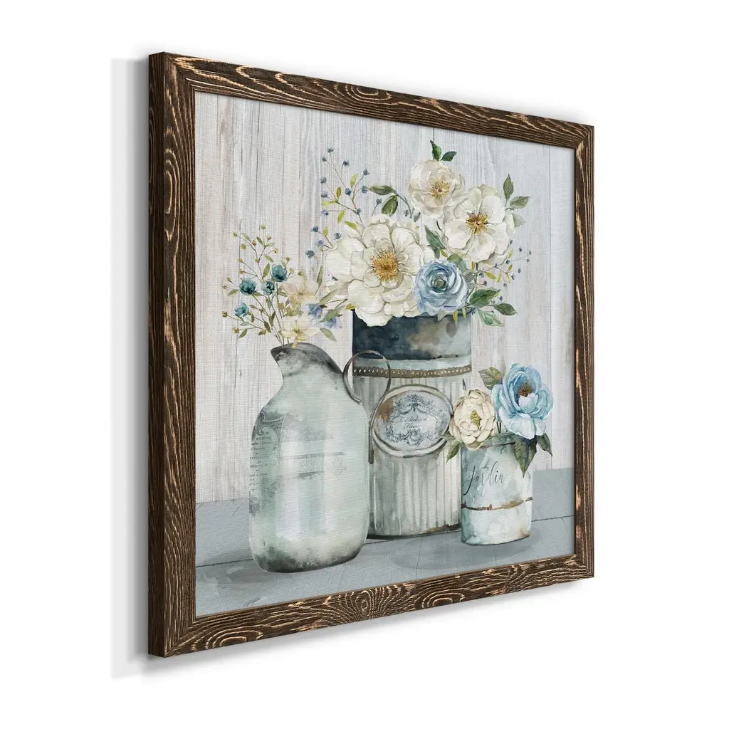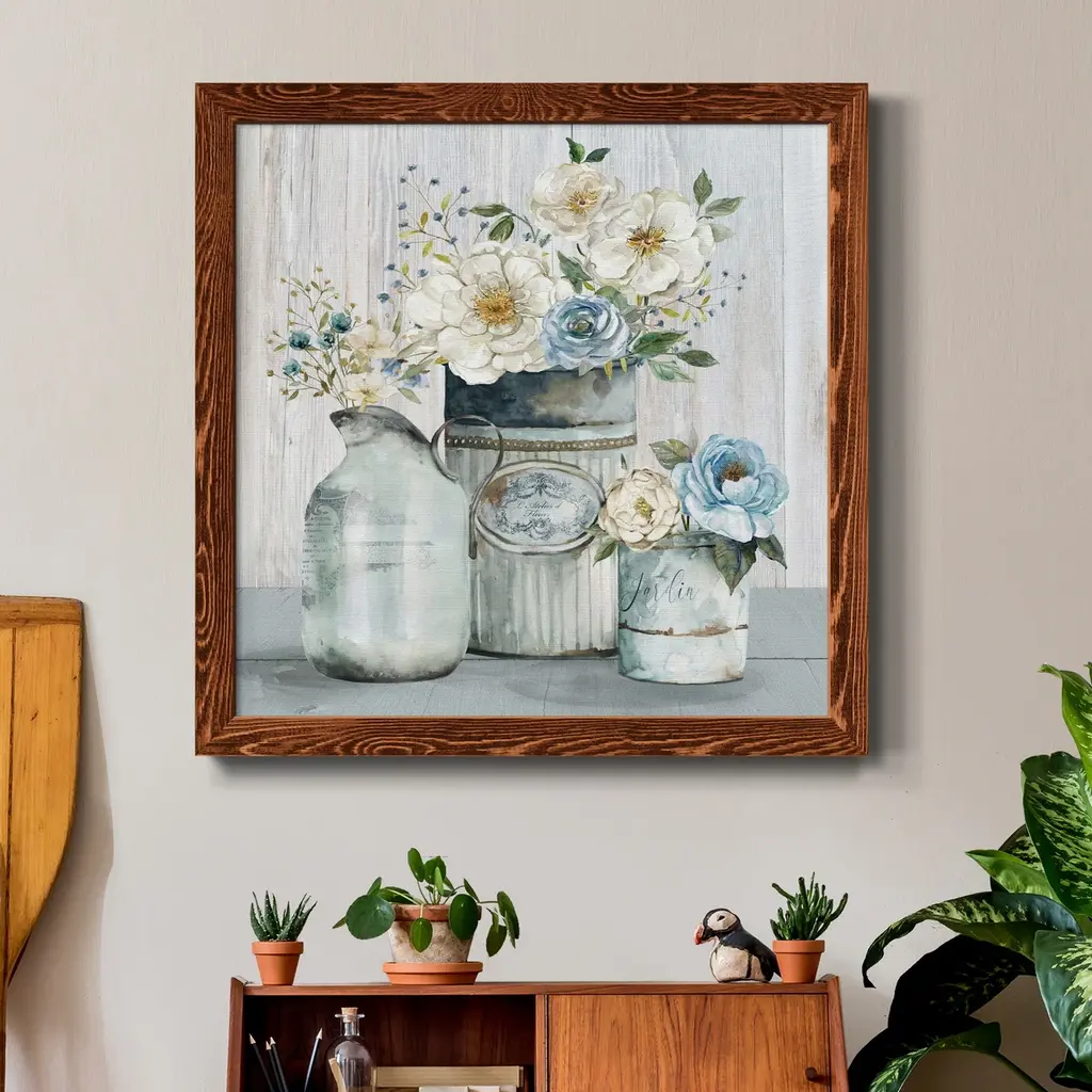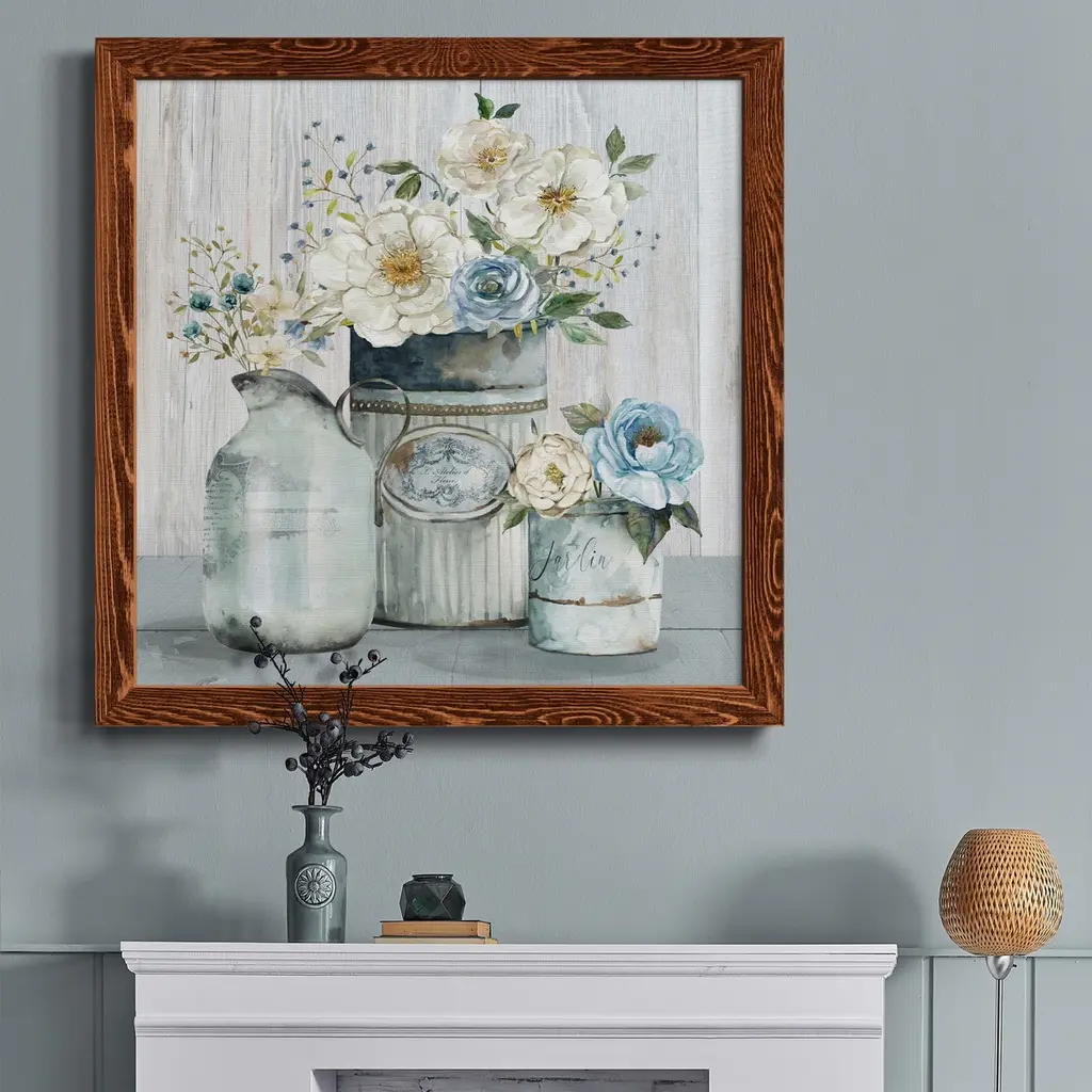 French Garden Flowers II-Premium Framed Canvas - Ready to Hang Framed in distressed wood and available in an array of sizes and colors Each piece is joined and assembled by hand and comes ready to hang 2 INCH BEVELED MATTE BOARD PLEXIGLASS COVERING READY TO HANG MADE IN THE USA SOLID WOOD FRAME MADE IN USA FADE RESISTANT GICLEE PRINTING on Canvas or Paper