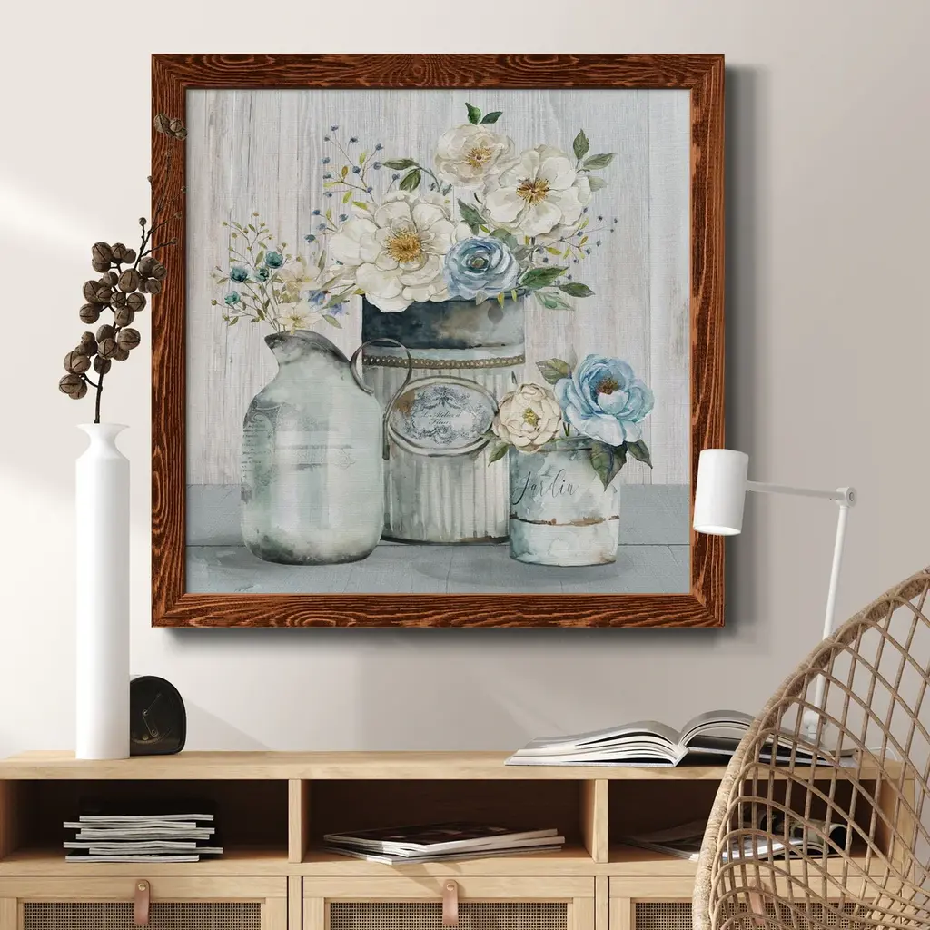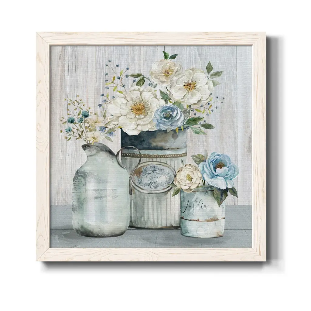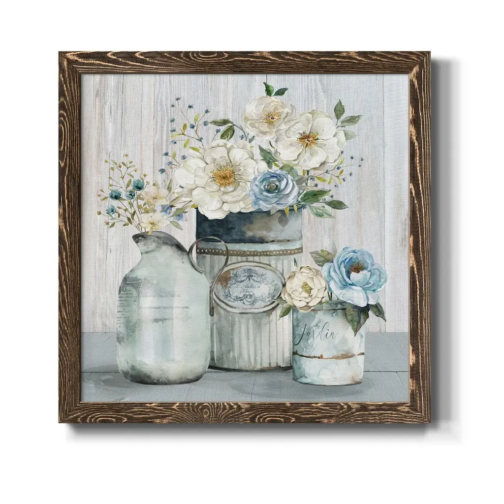 French Garden Flowers II-Premium Framed Canvas - Ready to Hang Framed in distressed wood and available in an array of sizes and colors Each piece is joined and assembled by hand and comes ready to hang 2 INCH BEVELED MATTE BOARD PLEXIGLASS COVERING READY TO HANG MADE IN THE USA SOLID WOOD FRAME MADE IN USA FADE RESISTANT GICLEE PRINTING on Canvas or Paper