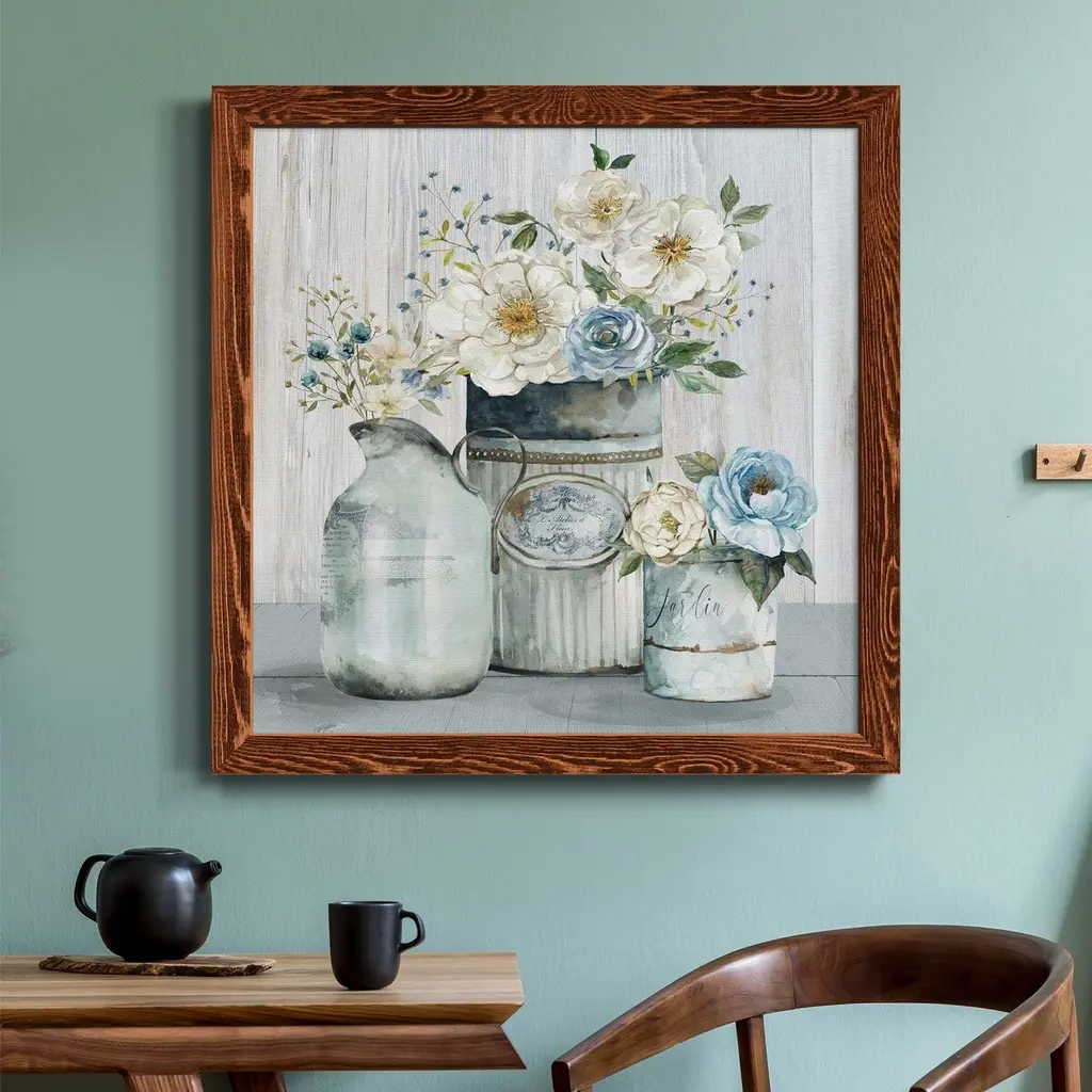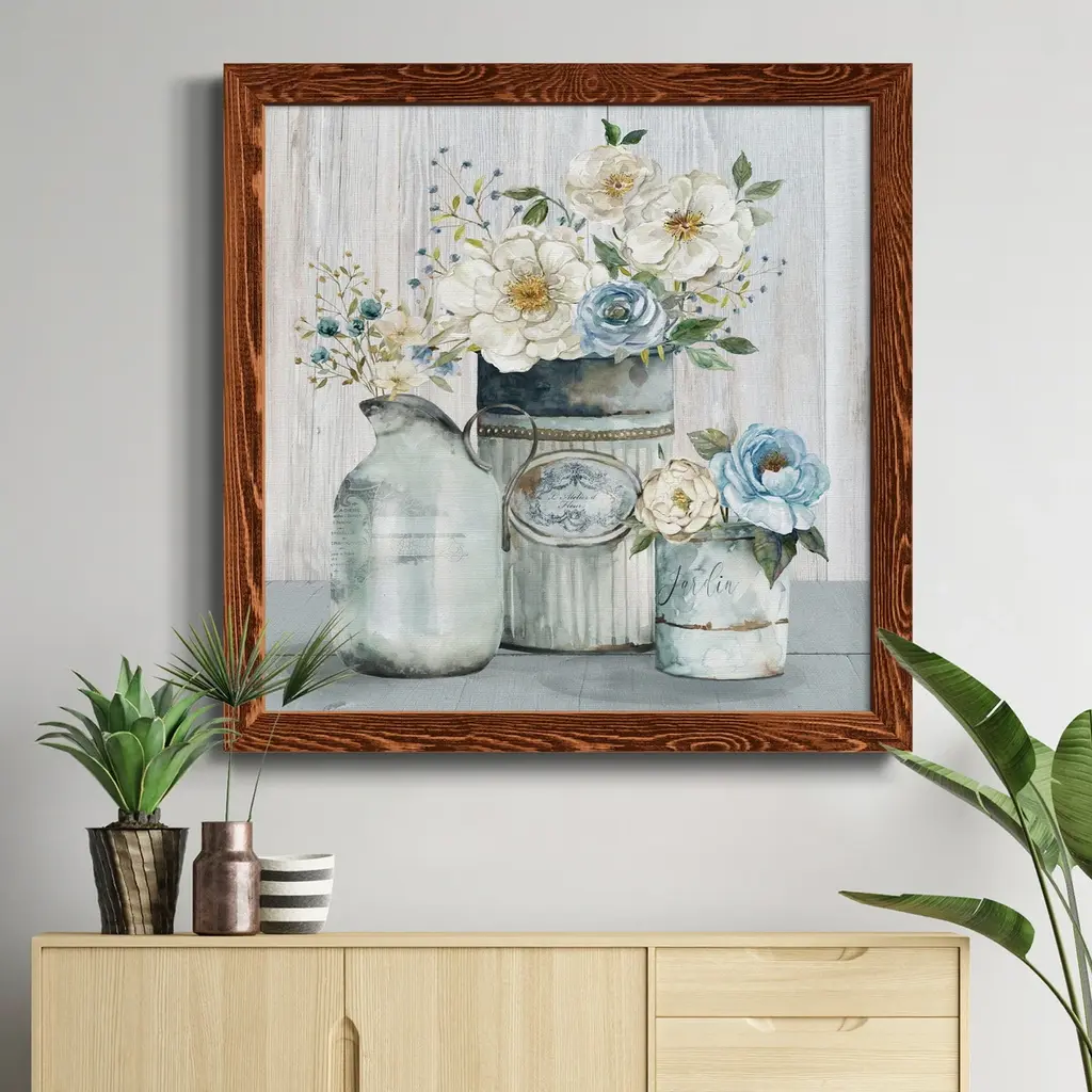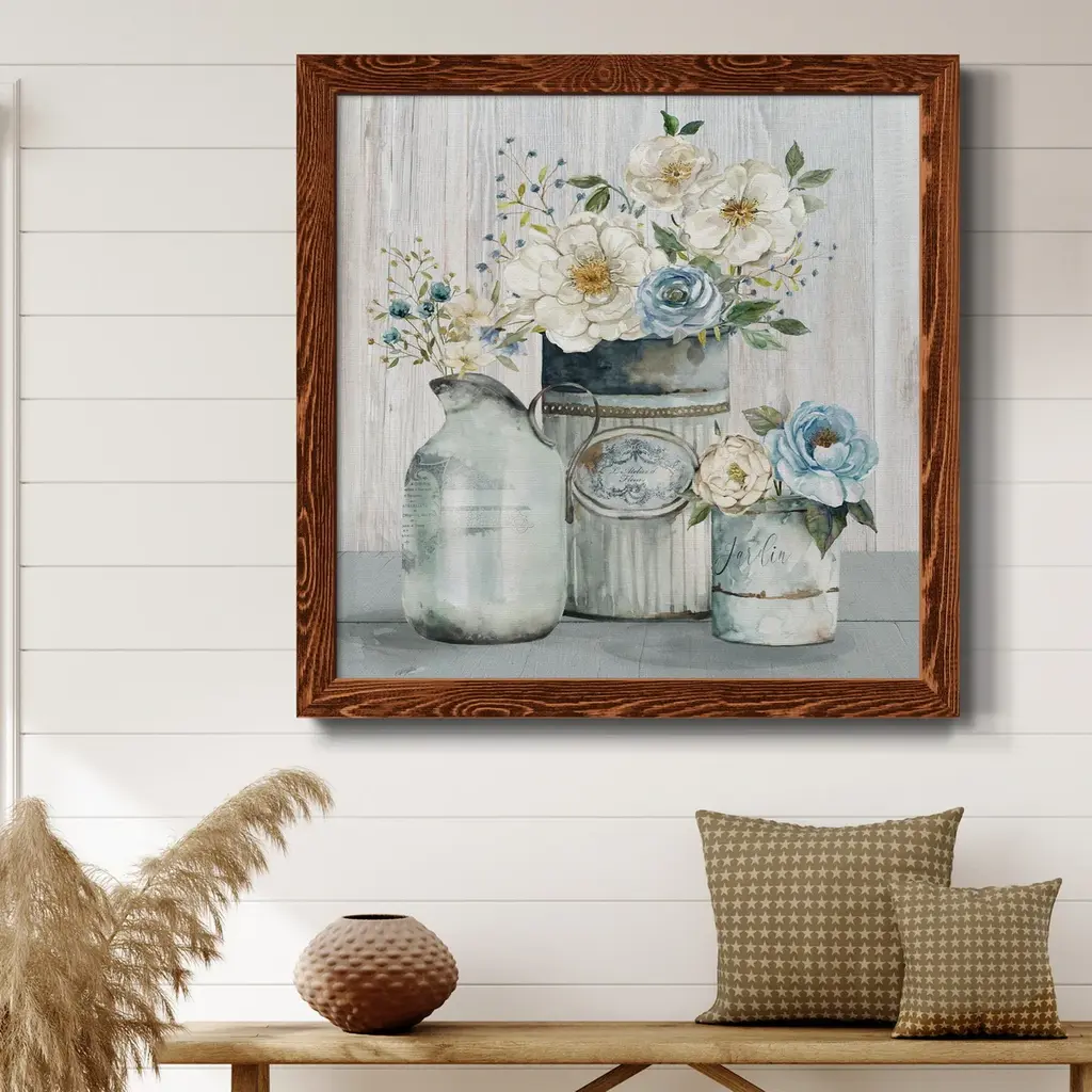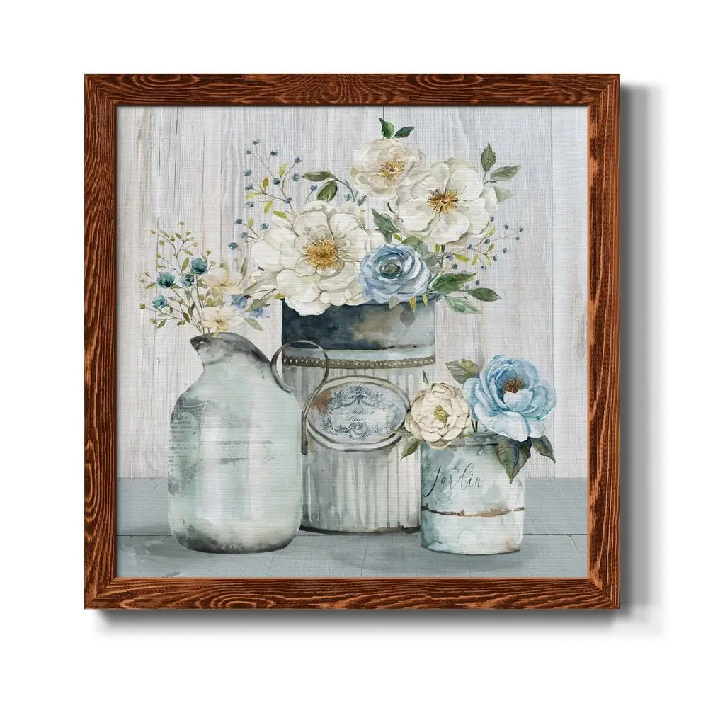 French Garden Flowers II-Premium Framed Canvas - Ready to Hang Framed in distressed wood and available in an array of sizes and colors Each piece is joined and assembled by hand and comes ready to hang 2 INCH BEVELED MATTE BOARD PLEXIGLASS COVERING READY TO HANG MADE IN THE USA SOLID WOOD FRAME MADE IN USA FADE RESISTANT GICLEE PRINTING on Canvas or Paper