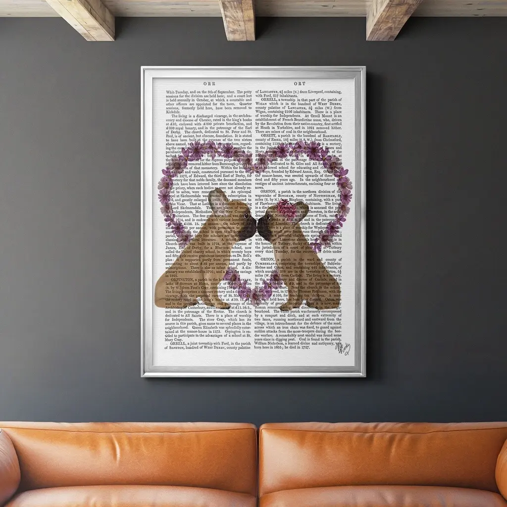 French Kiss and Flower Heart Premium Framed Print - Ready to Hang A Premium Framed Print created to last. Framed in distressed wood and available in an array of sizes and colors Featuring a beveled a solid wood stretcher bar, each piece comes ready to hand 4 SIZES AVAILABLE 30.5''X42.5'' - Overall Size 26.5'X36.5'' - Overall Size 22.5''x30.5'' - Overall Size 18.5''x24.5'' - Overall Size Each piece is made to order. Each piece comes with hanging hardware. Made in the USA Ready to Hang