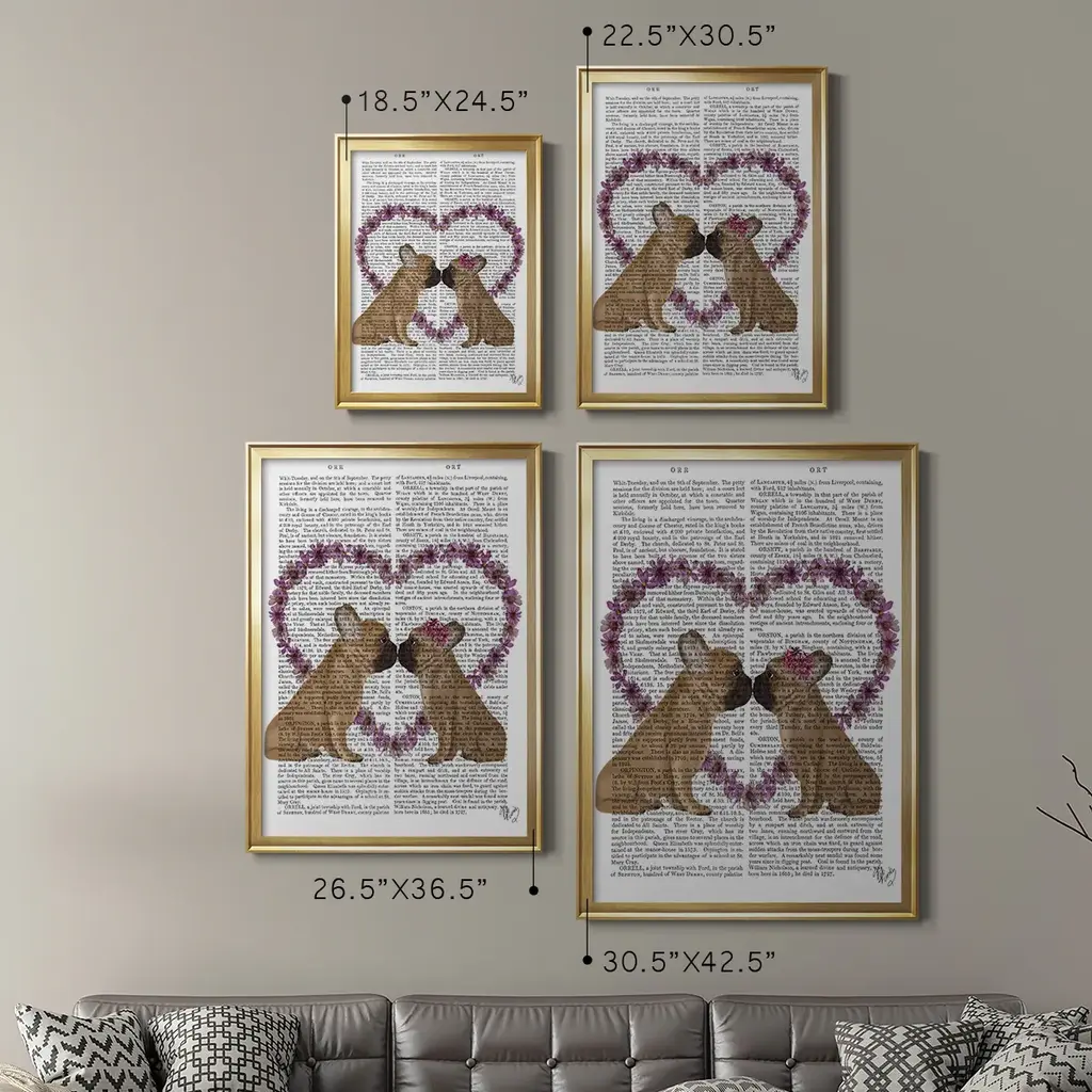 French Kiss and Flower Heart Premium Framed Print - Ready to Hang A Premium Framed Print created to last. Framed in distressed wood and available in an array of sizes and colors Featuring a beveled a solid wood stretcher bar, each piece comes ready to hand 4 SIZES AVAILABLE 30.5''X42.5'' - Overall Size 26.5'X36.5'' - Overall Size 22.5''x30.5'' - Overall Size 18.5''x24.5'' - Overall Size Each piece is made to order. Each piece comes with hanging hardware. Made in the USA Ready to Hang