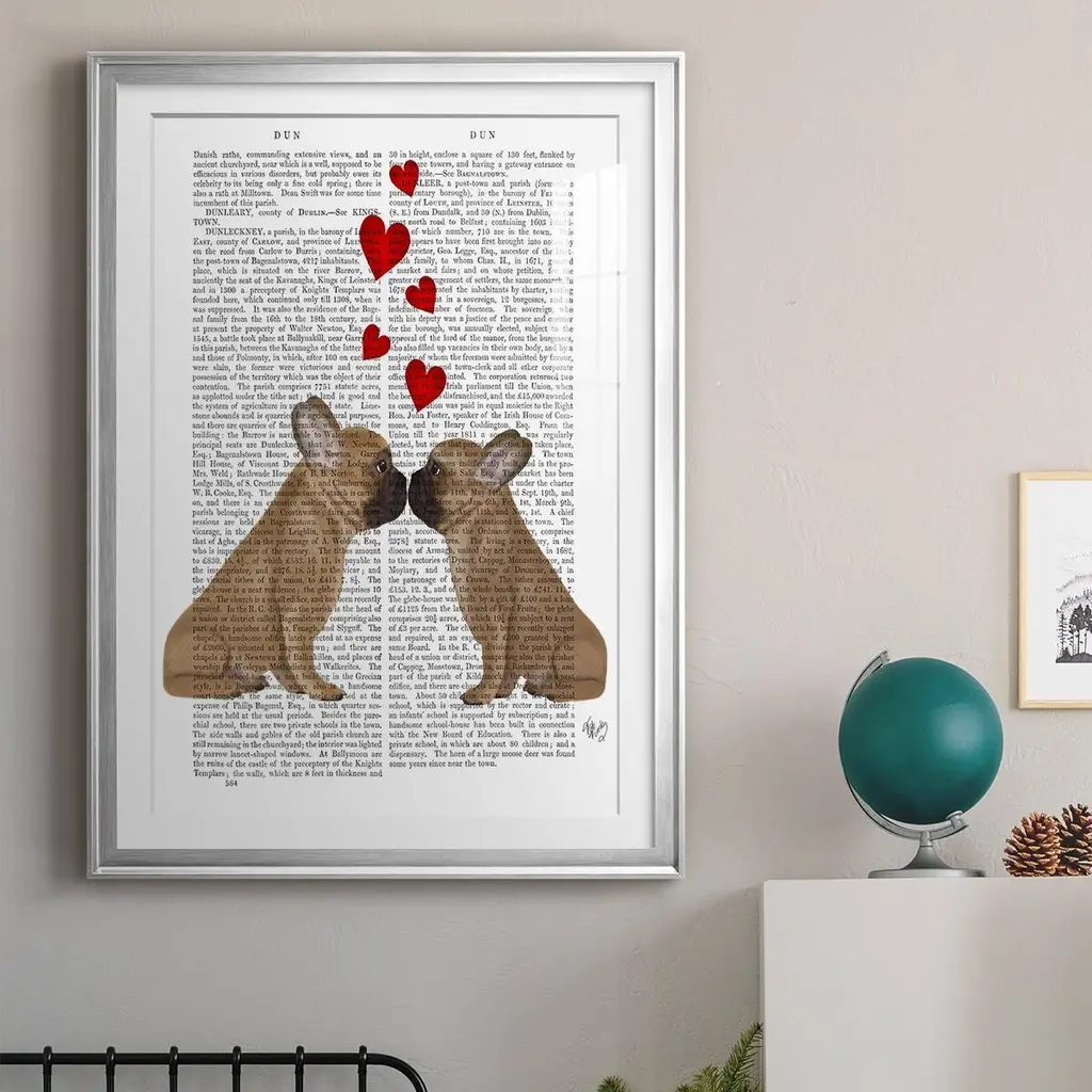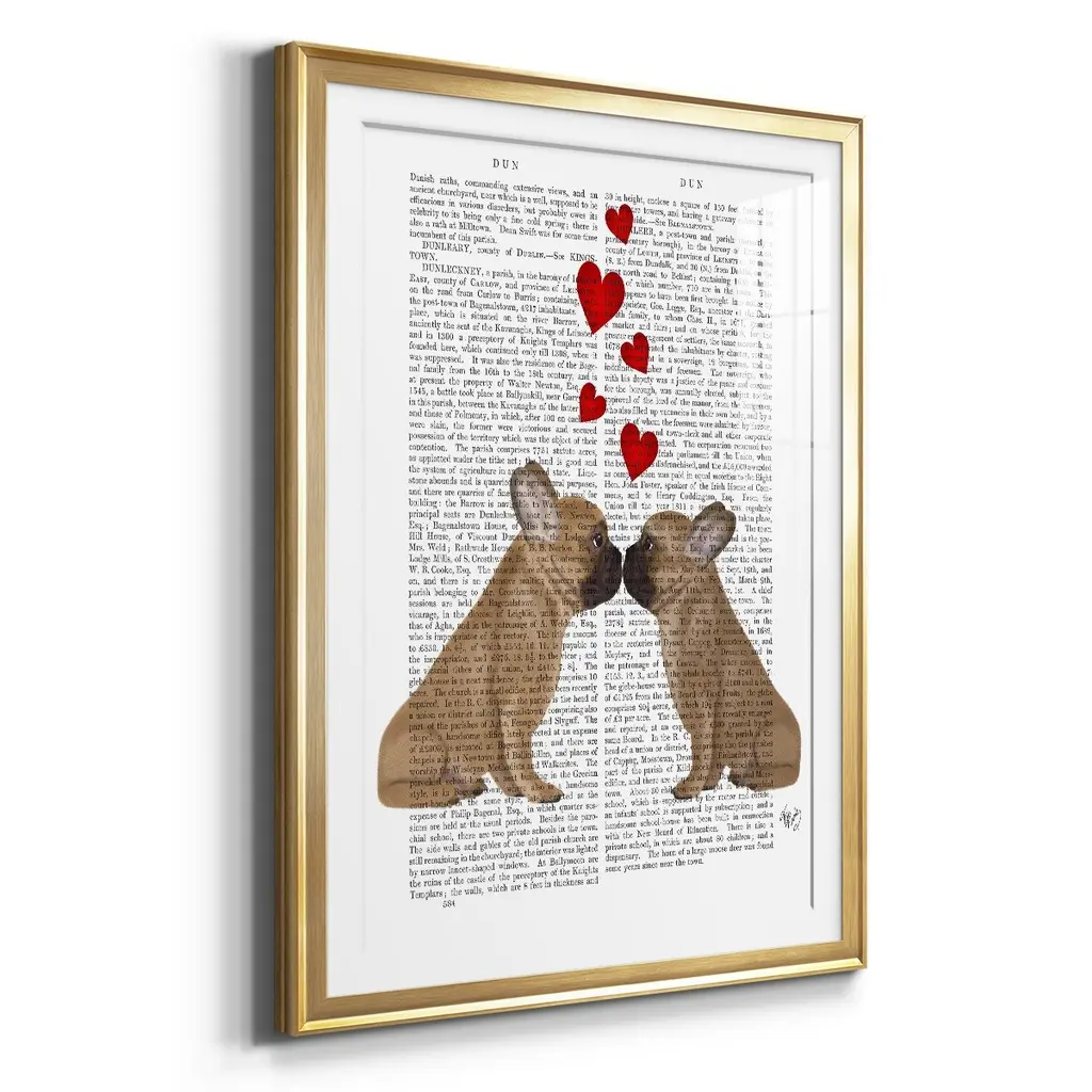French Kiss and Hearts Premium Framed Print - Ready to Hang A Premium Framed Print created to last. Framed in distressed wood and available in an array of sizes and colors Featuring a beveled a solid wood stretcher bar, each piece comes ready to hand 4 SIZES AVAILABLE 30.5''X42.5'' - Overall Size 26.5'X36.5'' - Overall Size 22.5''x30.5'' - Overall Size 18.5''x24.5'' - Overall Size Each piece is made to order. Each piece comes with hanging hardware. Made in the USA Ready to Hang Giclee Paper Print Acrylic Glass Beveled Matt Board