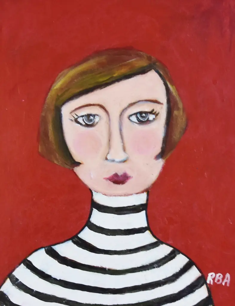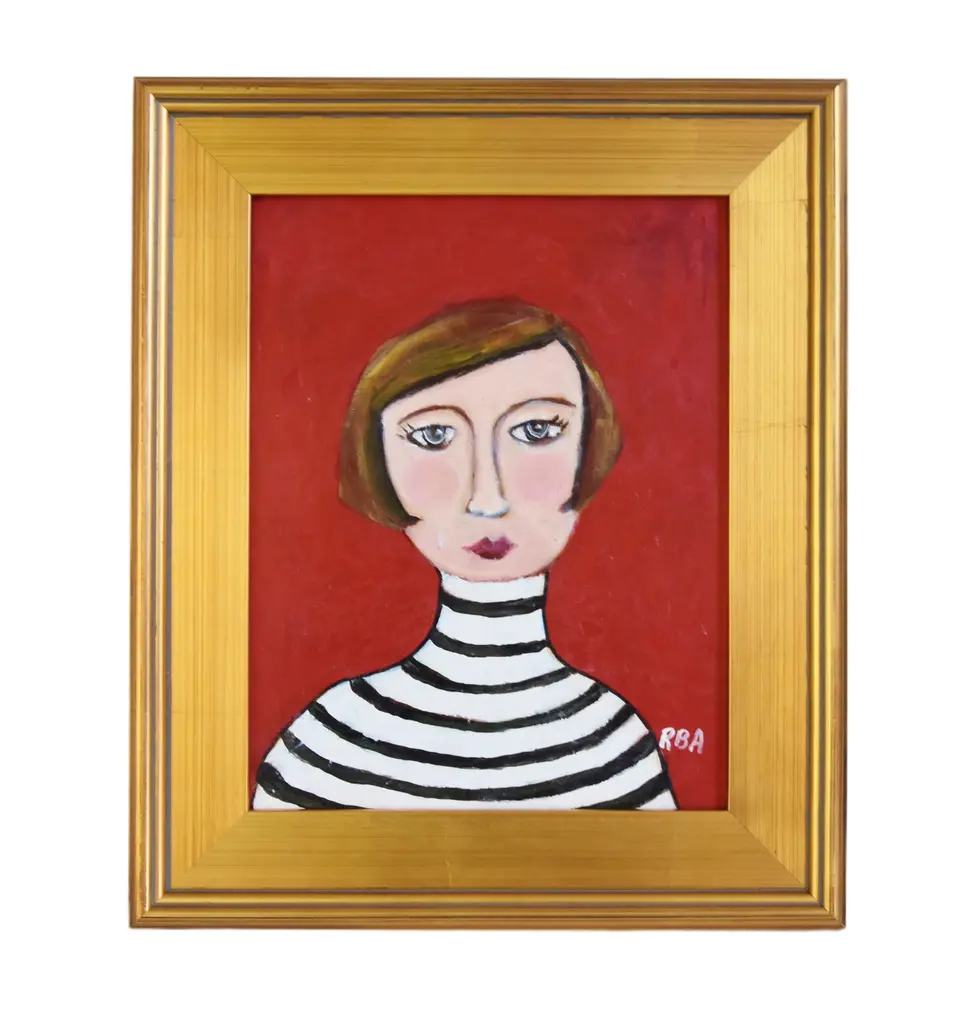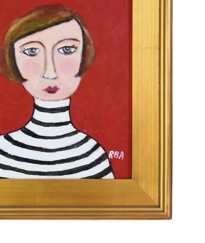 Striking French mademoiselle portrait oil painting on artist canvas panel. Initialed �������RBA�� by the artist in the lower, right corner. Signed by the talented artist ������Ruth Arenz” on the reverse. Included are the antiqued gold wood frame and hanging hardware/wire. Dimensions: Artwork, 11��L x 14”H; overall, including the frame, 16��L x 19�������H. Excellent, beautiful condition!!