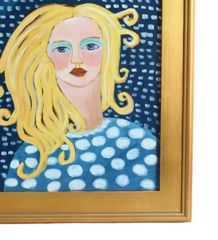 Original one-of-a-kind contemporary portrait oil painting on stretched artist's canvas of a French Mademoiselle with flowing blonde hair. The talented artist "Ruth Arenz” signed the painting on the lower right. Included are the antiqued gold wood frame and hanging hardware/wire. Dimensions: Artwork, 16"L x 20”H; overall, including the frame, 21��L x 25"H. Excellent beautiful condition, antiqued gold frame!!!