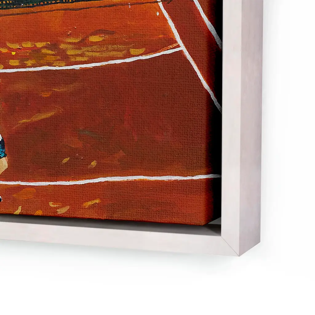 DESCRIPTION: French Open by Shaun Ellison in Whitewashed Frame, Medium Art Print SPECIFICATIONS: Type: Giclée Art Print on Matte Canvas. Overall Size (in): 32 x 36. Image Size (in): 30.5 x 34.5. Orientation: Vertical. Flush/Float/Matted: Float. Frame Color: Whitewashed. Hanging Hardware: Picture Perfect. FRAMING: Each art work arrives framed and ready to hang. We use handmade frames with a plexiglass glazing front, because it offers less glare than standard glass. At this time, we only offer framed prints. ARTIST BIO: What began as a tool to process, South African artist Shaun Ellison’s relationship to the sport of tennis has grown into a vibrant, evocative practice that captures the spontaneity and frailty of groups, success and failure in sport. Based in Brooklyn, New York, the artist brings unity to many of the inherent contradictions of tennis and its history, and uses color, expressive composition, and unexpected figures and motifs to touch on the diversity, rigor and growth of the sport and its cultural legacy. Ellison studied at the University of Louisiana at Lafayette, School of Visual Arts and NY Studio School. While at Louisiana Lafayette, the artist played for the school’s Division 1 tennis team before competing professionally on the ATP Tour. Recent exhibitions include Hit & Miss at Taymour Grahne Projects (London, UK).