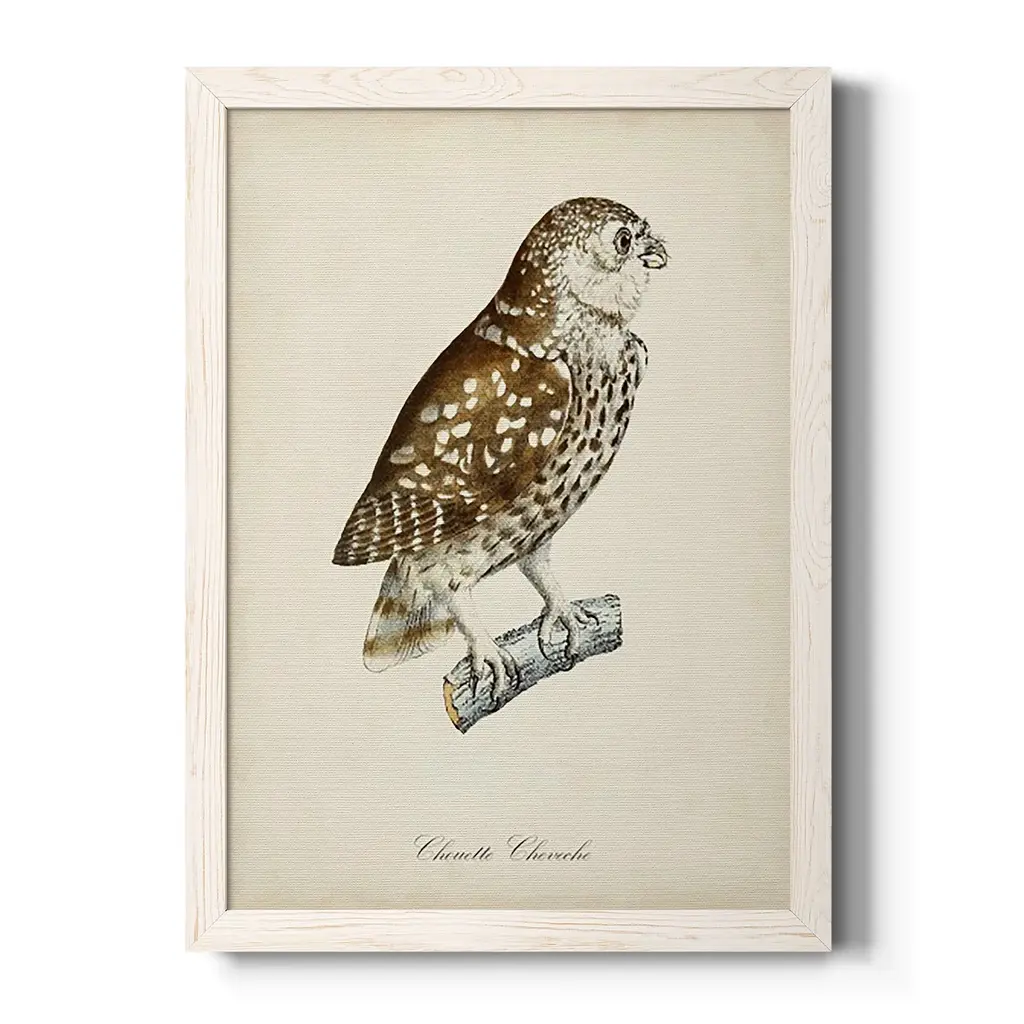 French Owls I-Premium Framed Canvas - Ready To Hang - 27.5x37.5 - Maple