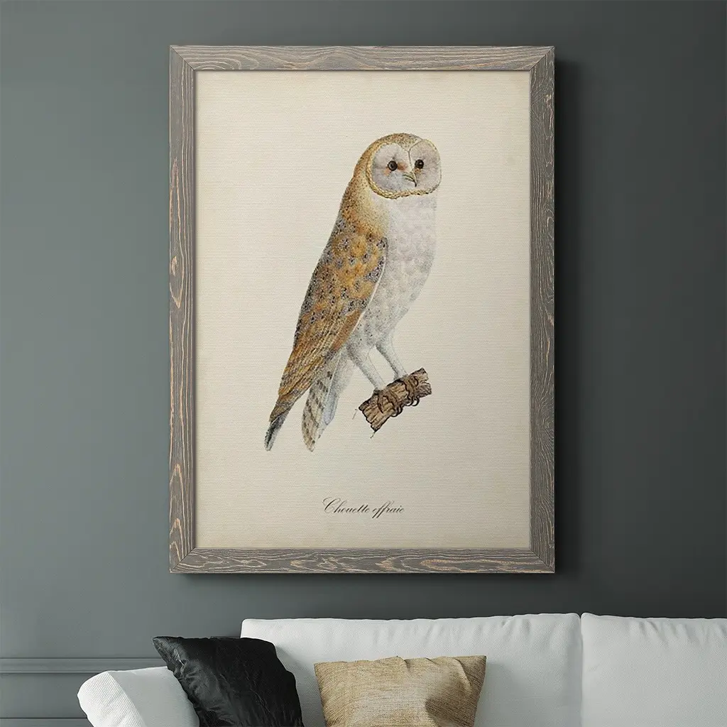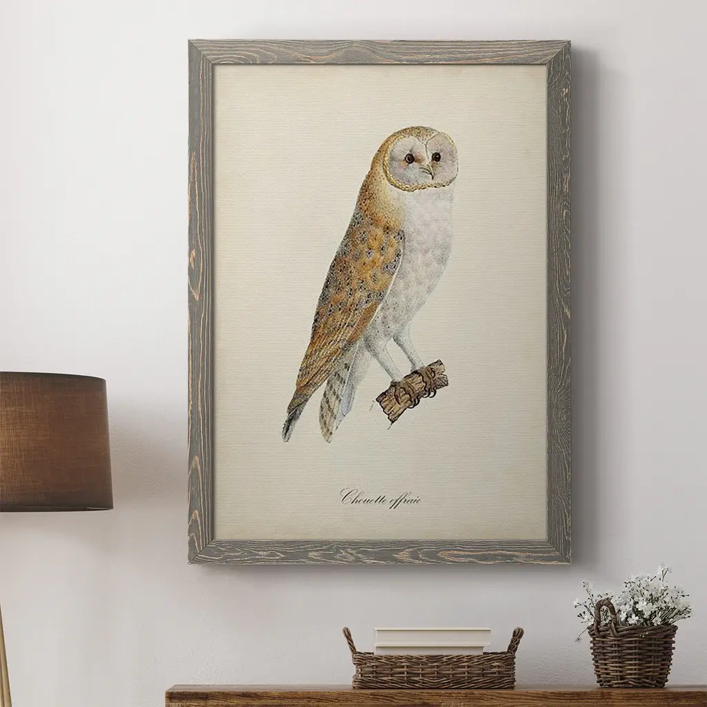 French Owls Vi-Premium Framed Canvas - Ready To Hang - 27.5x37.5 - Grey
