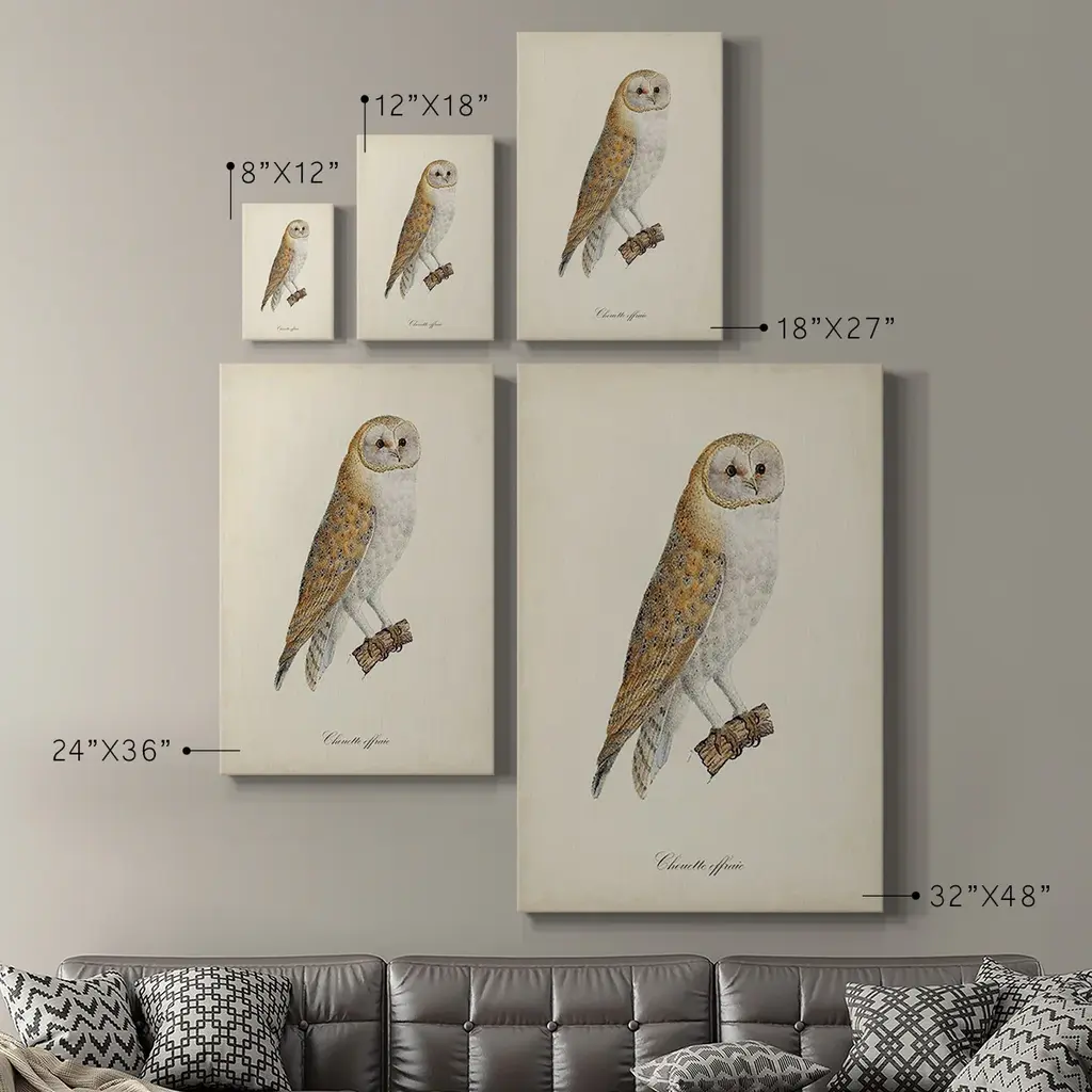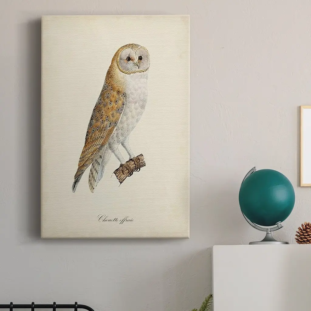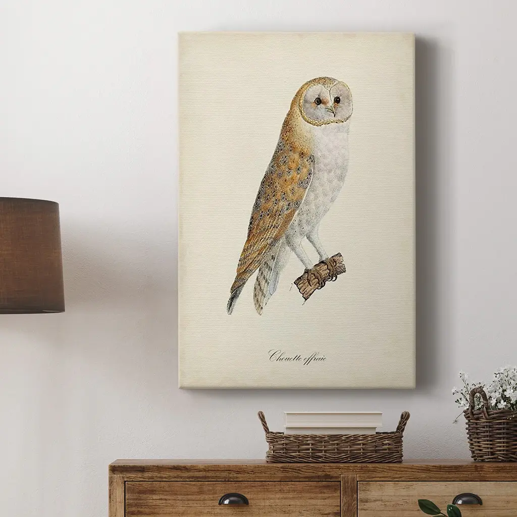 French Owls VI Premium Gallery Wrapped Canvas - Ready to Hang A premium hand stretched gallery wrapped canvas print created to last. Featuring a beveled a solid wood stretcher bar, each piece comes ready to hand 6 SIZES AVAILABLE 8''X12'' - Overall Size 12''X18'' - Overall Size 18''X27'' - Overall Size 24''x36'' - Overall Size 32''x48'' - Overall Size 40''x60'' - Overall Size Each piece is made to order. Built to Last Each piece comes ready to hang Solid wood stretcher Fade and Water resistant Made domestically