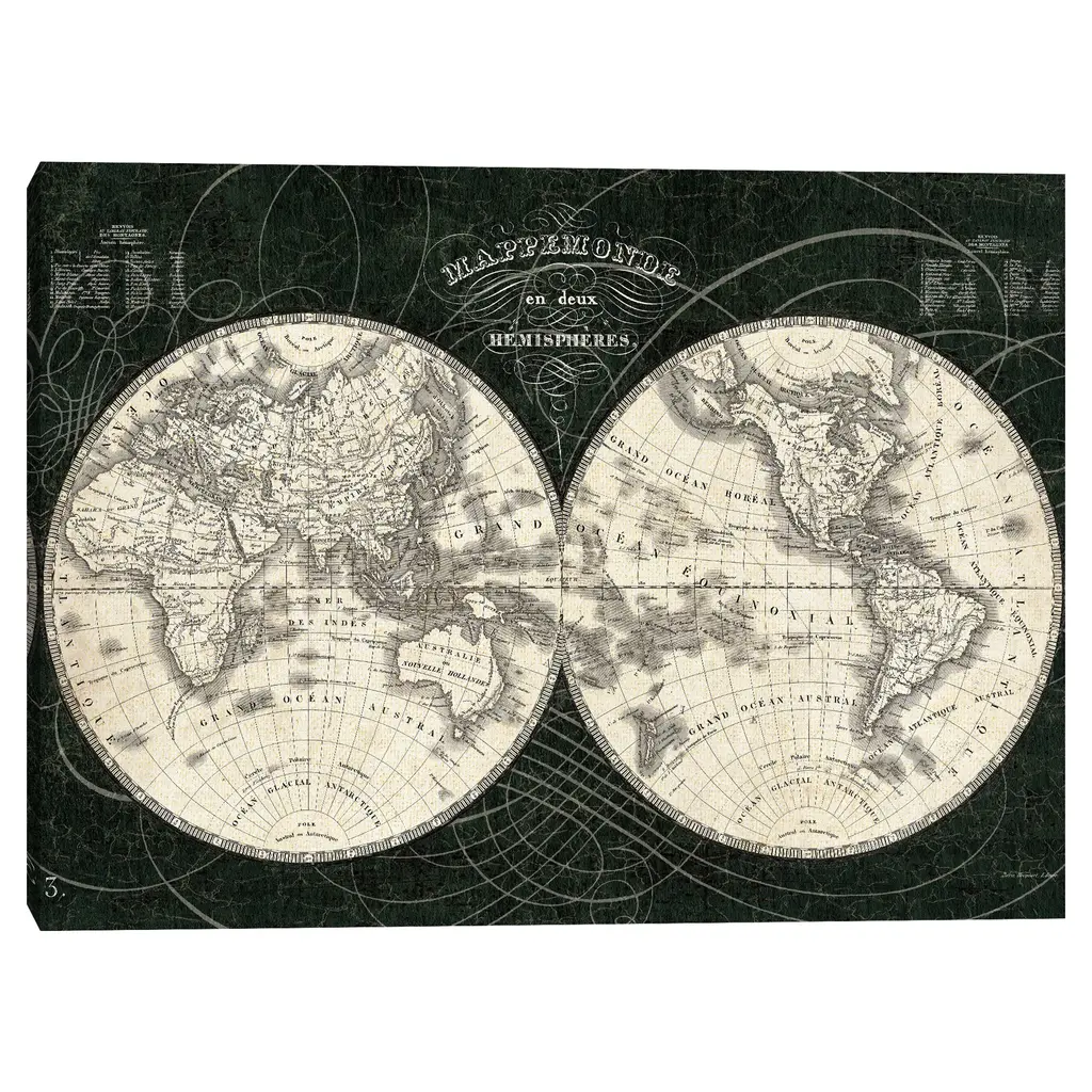 French World Map I By Sue Schlabach Canvas Art Print - Black - 30 X 40