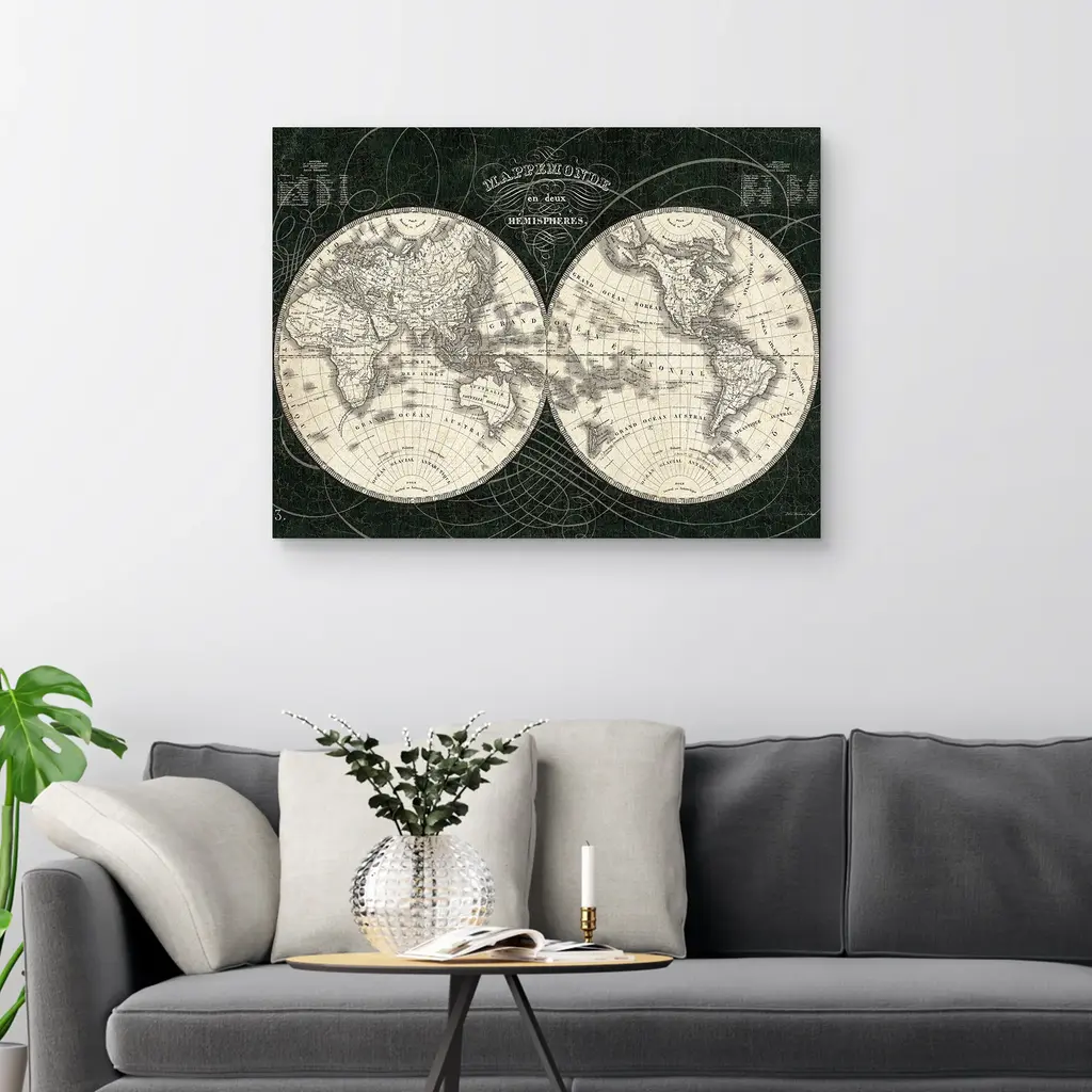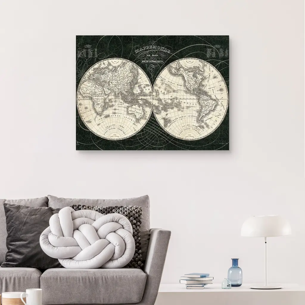 This attractive, vintaged map of the world in French, was beautifully illustrated by painter/photographer Sue Schlabach. Gallery-Wrapped, in black and white print, French World Map would make be an educational offering for the scholar in your family.