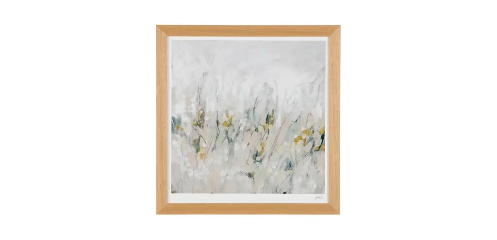 Movement, depth, and variety meet muted color in this abstract field of flowers; the result is both vibrant and visually serene. Display both pieces in this series to create a gentle yet mesmerizing focal point.